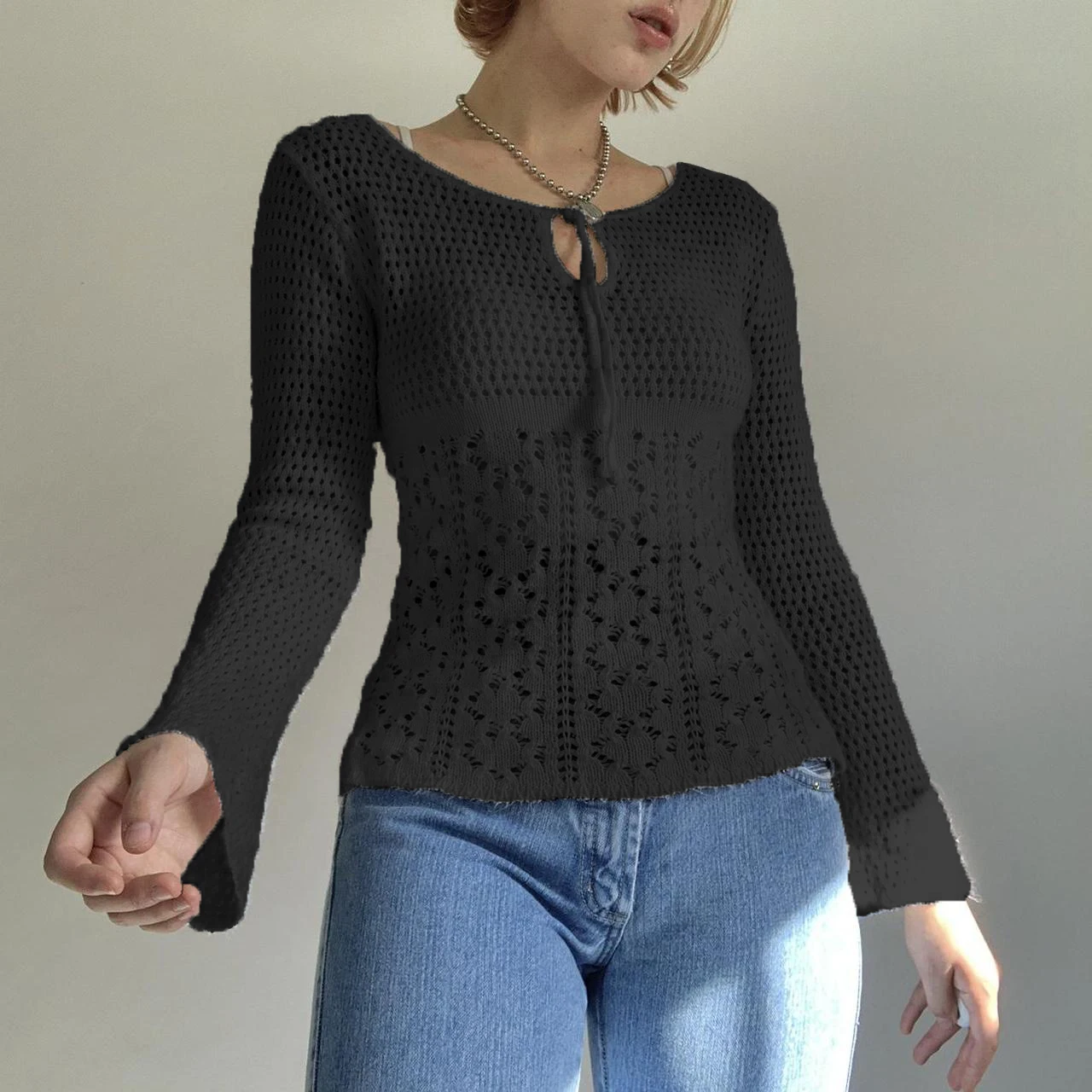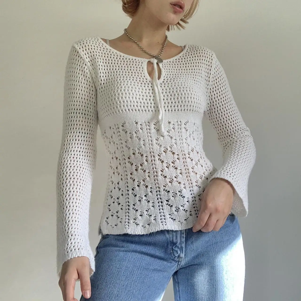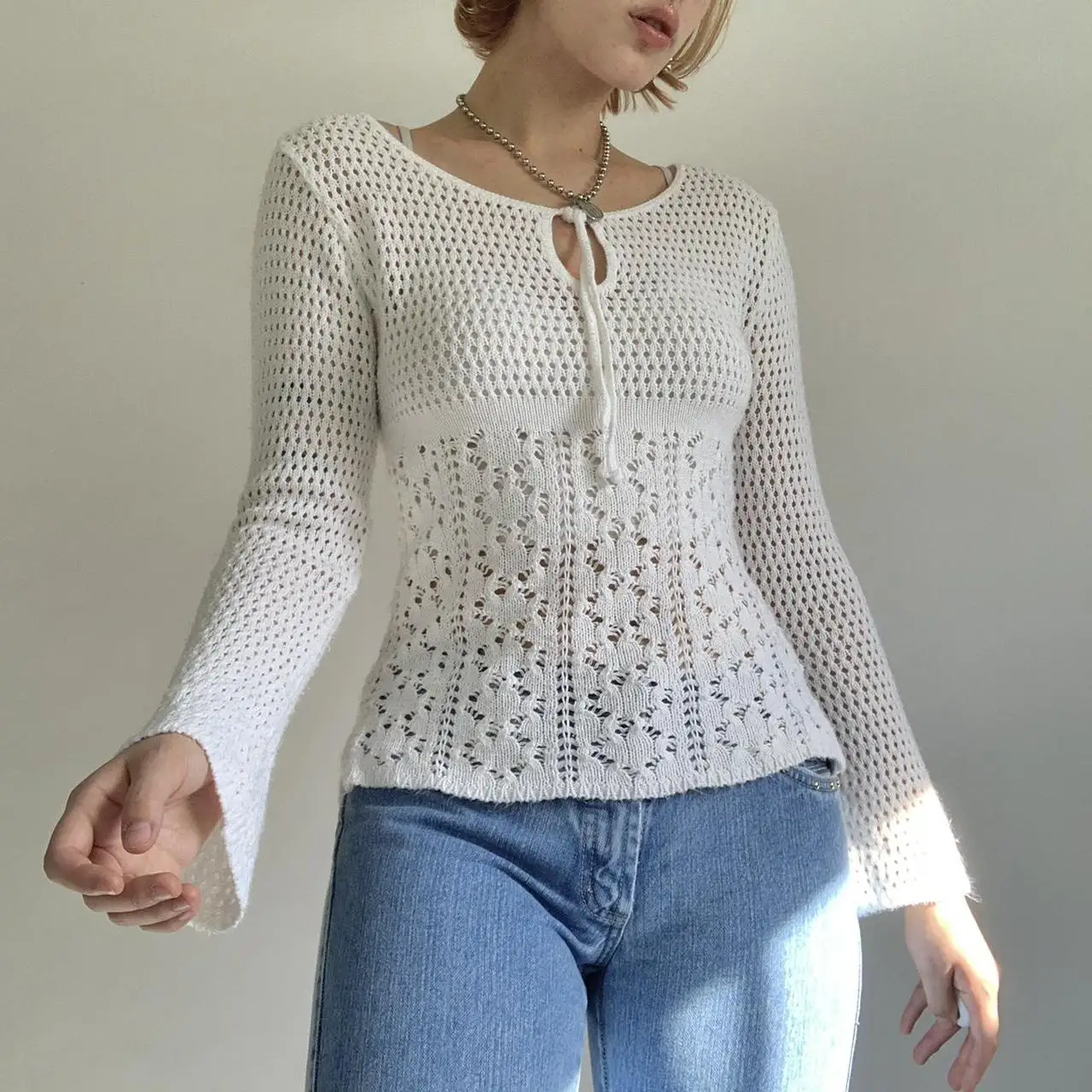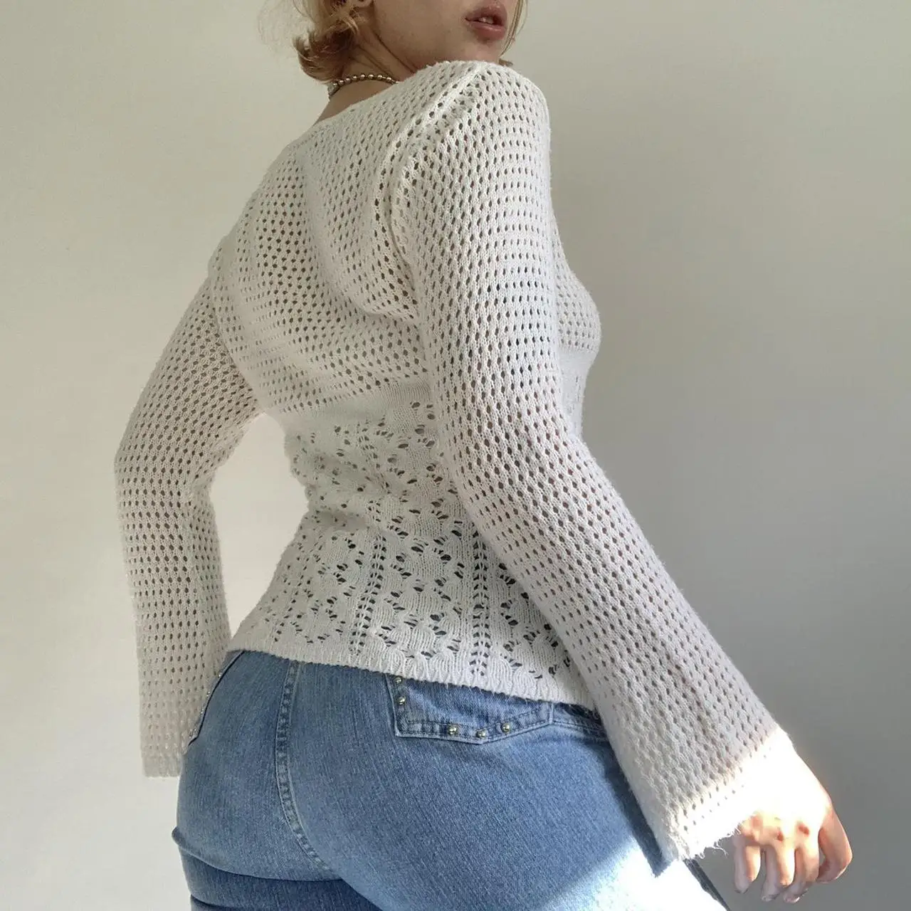 Купить Dourbesty Vintage Cute Chic Knitted Tops Y2K Women Crochet Pullovers Aesthetics Retro Hollow Out Sweater Fairy Grunge Clothes за 400рублей