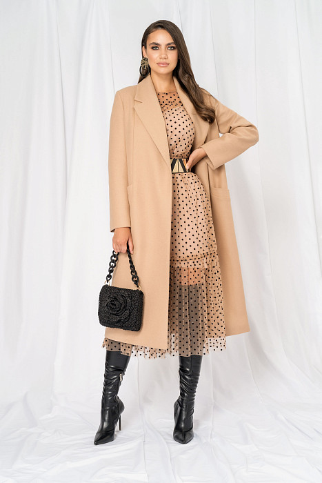Бежевое Пальто Миди
