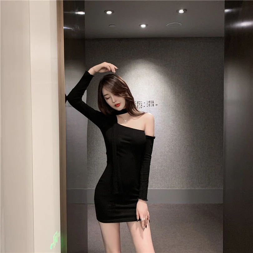 Купить Dress Winter Autumn Elegant Female Sexy One Shoulder Design Sense Slim Wrap Hip Skirt Fashion Temperament Goddess Style Top за 1000рублей