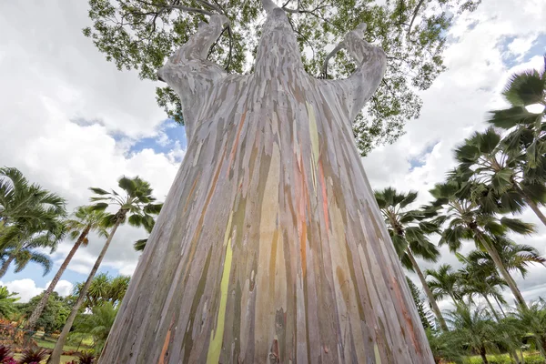 Радужный эвкалипт достигает в высоту 75 метров, ствол достигает диаметра 2,4 метра . В естественных условиях радужный эвкалипт растет на территории Филиппин, Индонезии, Папуа-Новой Гвинеи .