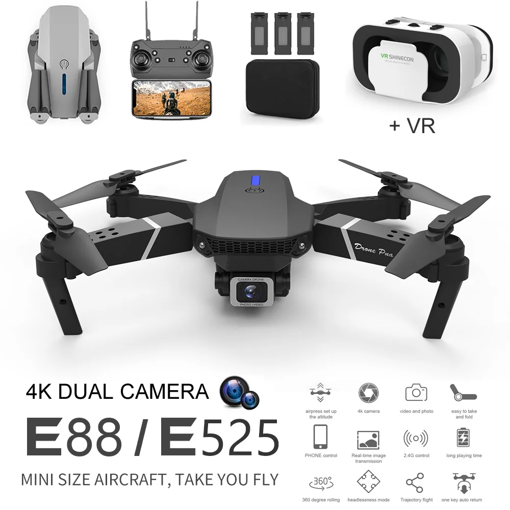 Купить E88 Easy Fly Mini VR FPV Drone 4K Aerial Photography RC Folding Quadcopter With Camera Long Range Remote Control Helicopter Toys за 1300рублей