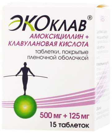 Купить ЭКОКЛАВ 0,5+0,125 N15 ТАБЛ П/ПЛЕН ОБОЛОЧ по цене 201 .10 руб . в интернет аптеке в Кировске, всегда в наличии, инструкция по применению ЭКОКЛАВ 0,5+0,125 N15 ТАБЛ П/ПЛЕН ОБОЛОЧ на Apteka .ru .