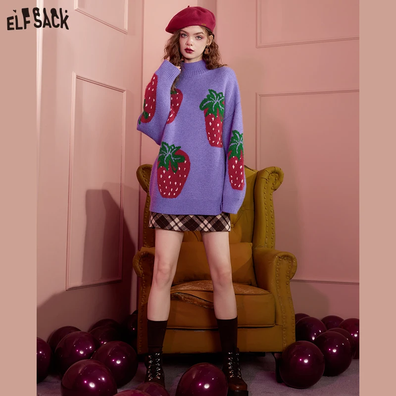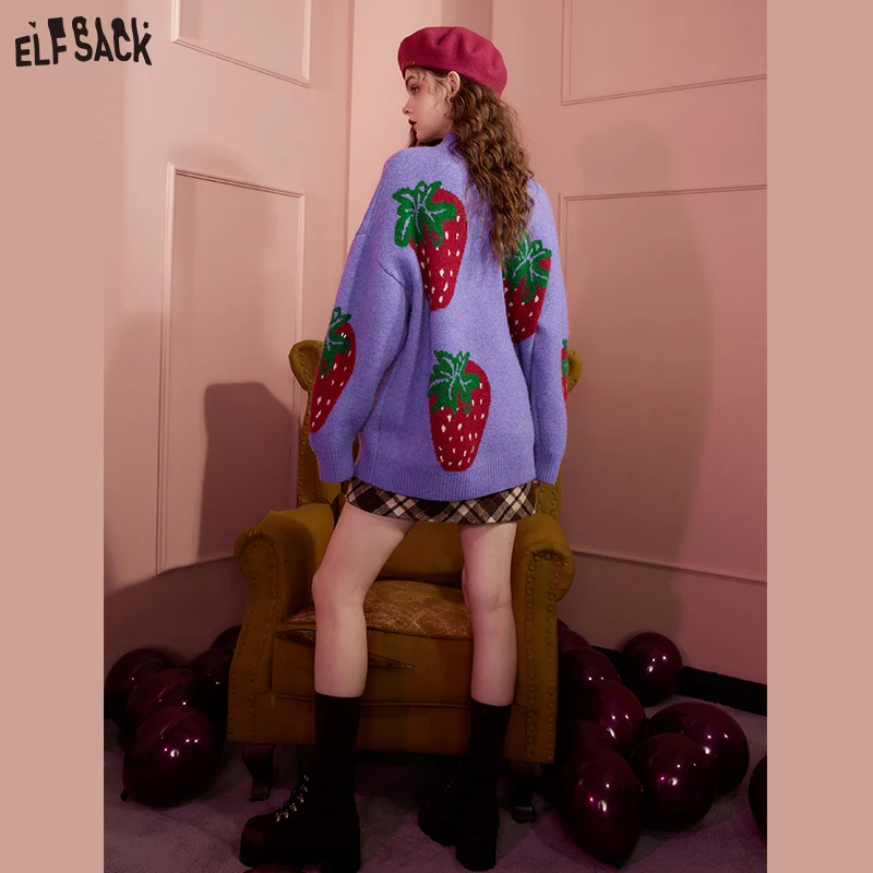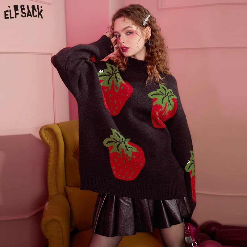 Купить ELFSACK Strawberry Turtleneck Pullover Sweaters Women 2022 Autumn/Winter Loose Basic Daily Tops за 3050рублей