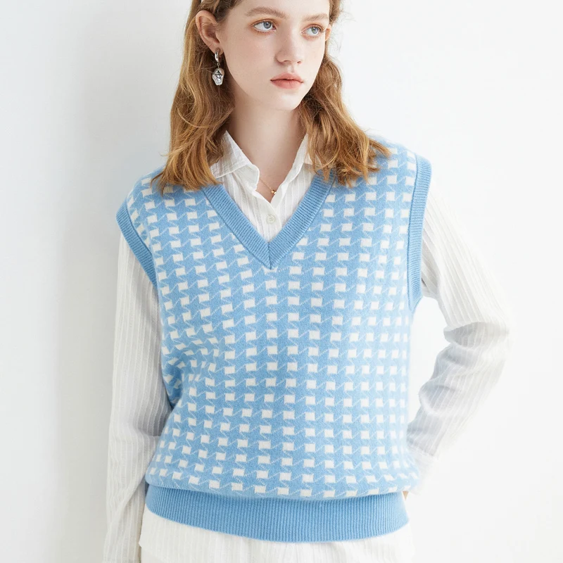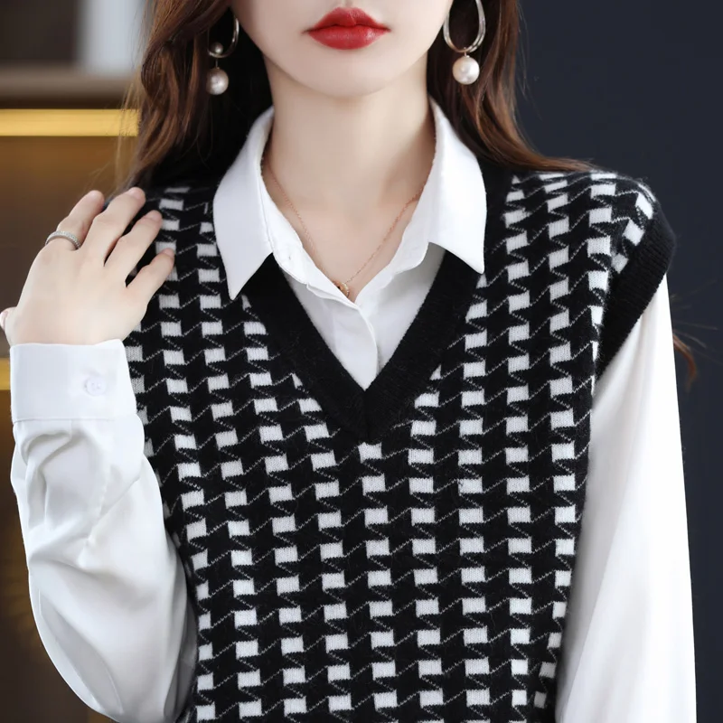 Купить Early Autumn 100 Pure Wool Knitted Vest Heart Women Retro Thousand Bird Grid Sweater Vest Overlapped with a Vest за 1750рублей