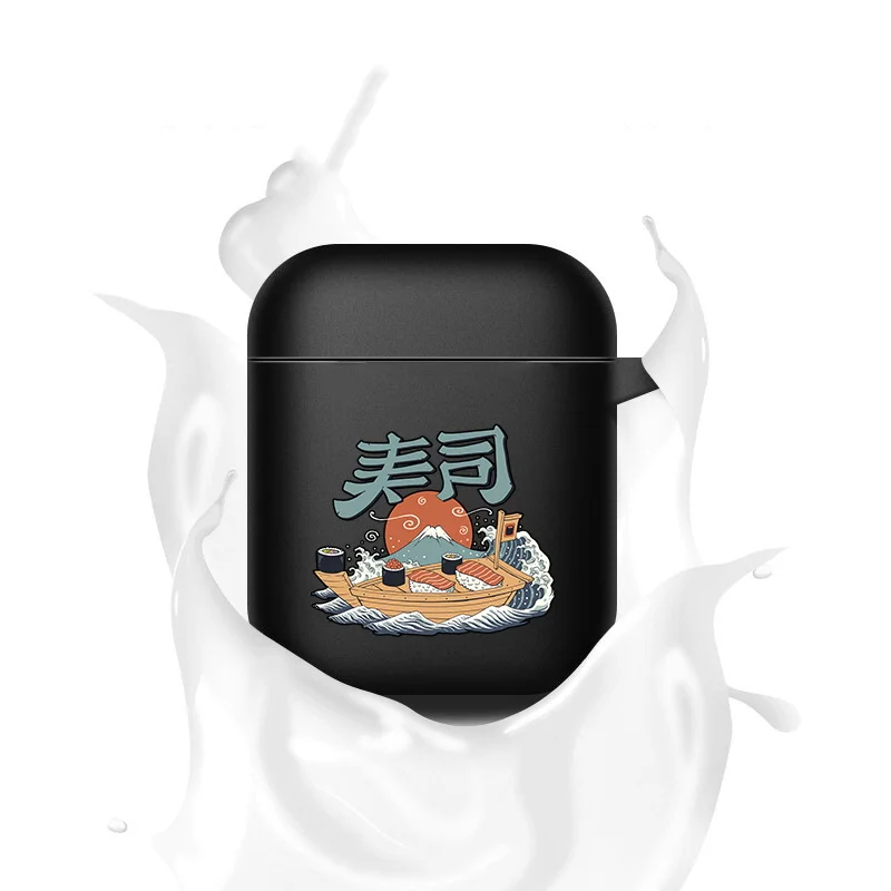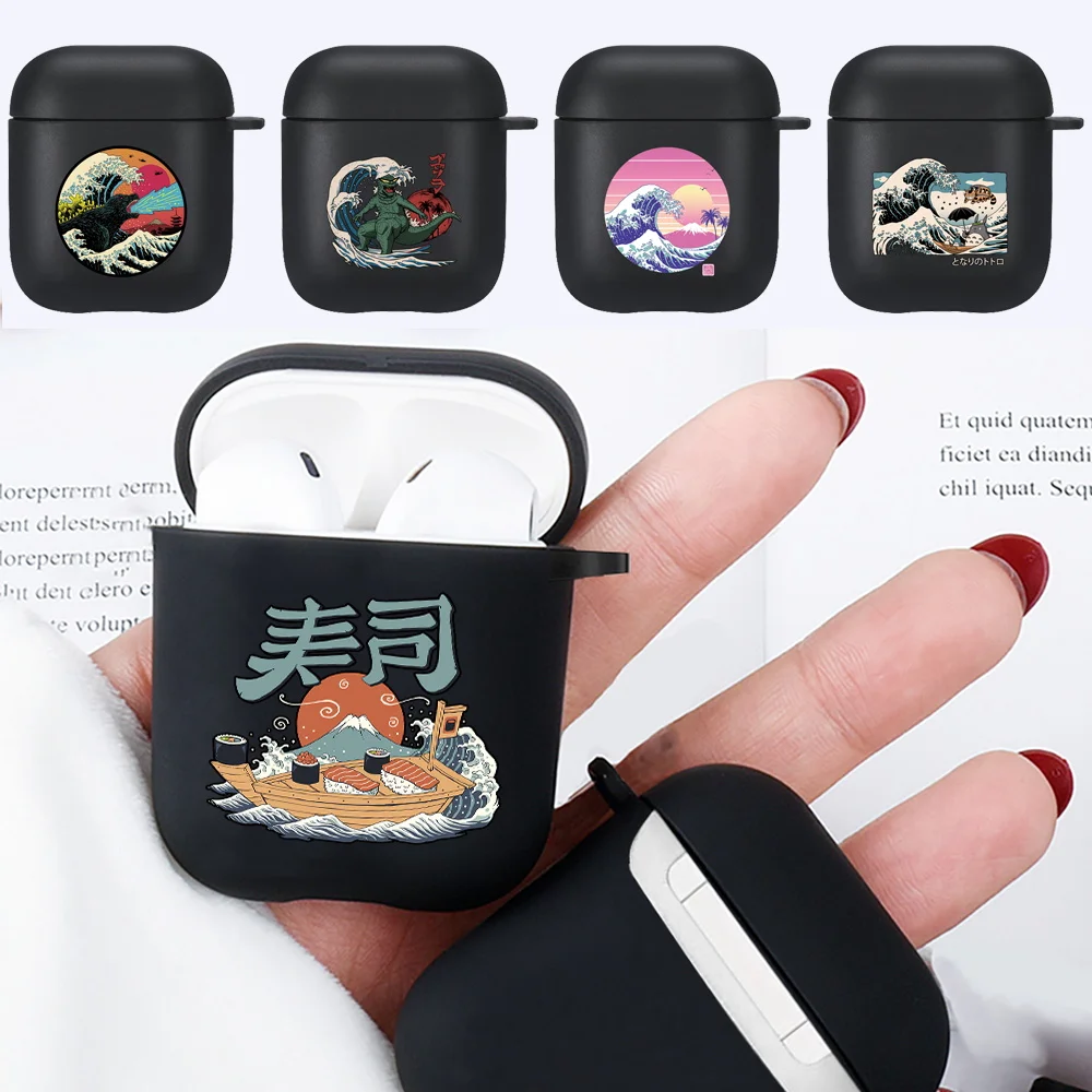 Купить Earphone Case for Apple AirPods 1st /2nd Generation Anti-drop Wireless Bluetooth Headphone Cover Wave Print Black Silicone Cases за 100рублей