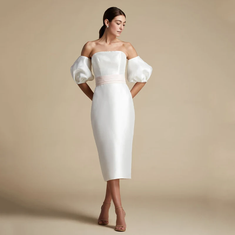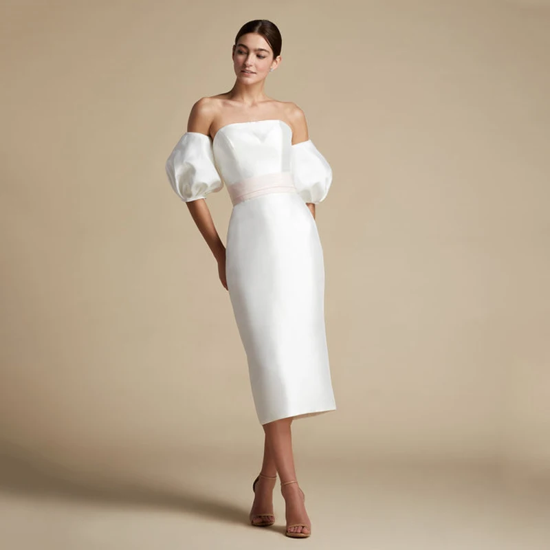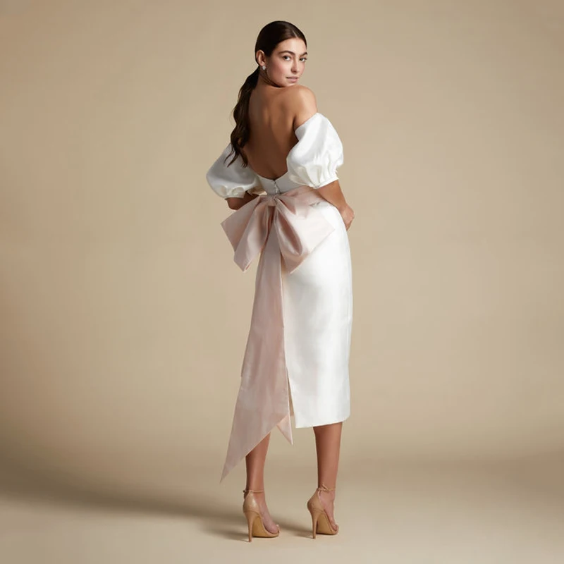 Купить Eightree 2021 Boho Simple Wedding Dress Ivory Strapless Bridal Gown Short Sleeve Split Backless Bridal Gown Short Dress With Bow за 3950рублей