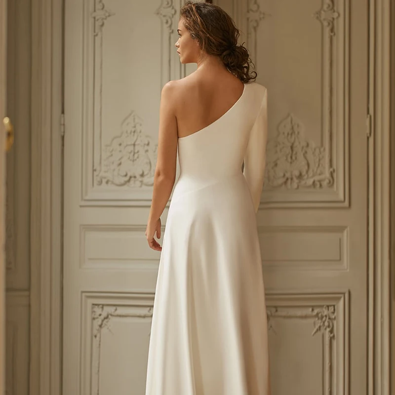 Купить Eightree Ivory/White One Shoulder Wedding Dresses Satin High Split Bridal Gowns A-Line Simple Party Evening Gowns Custom Size за 4200рублей
