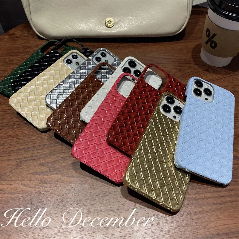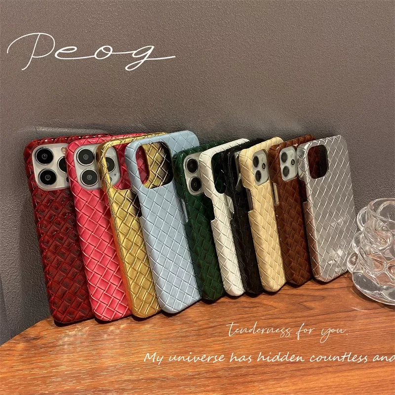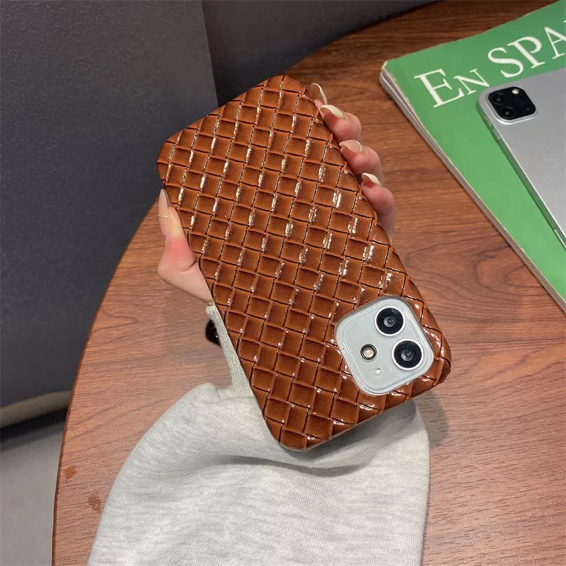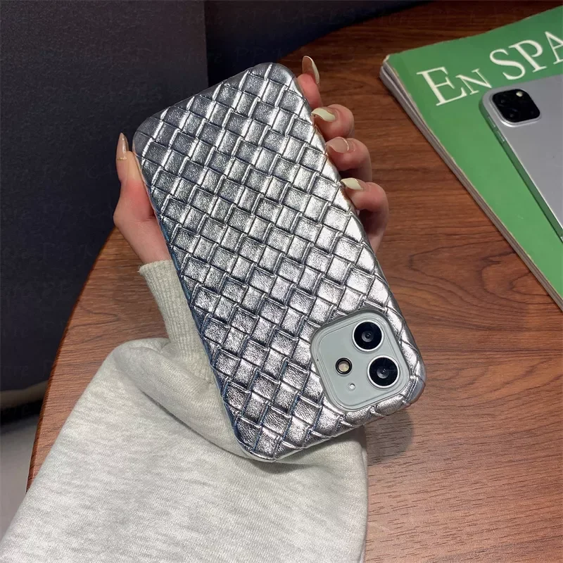 Купить Electroplated Glossy Weave Leather Phone Case For iPhone 13 12 Pro Max 11 XS XR 8 7 Plus Vintage Coque Funda Embossed за 650рублей
