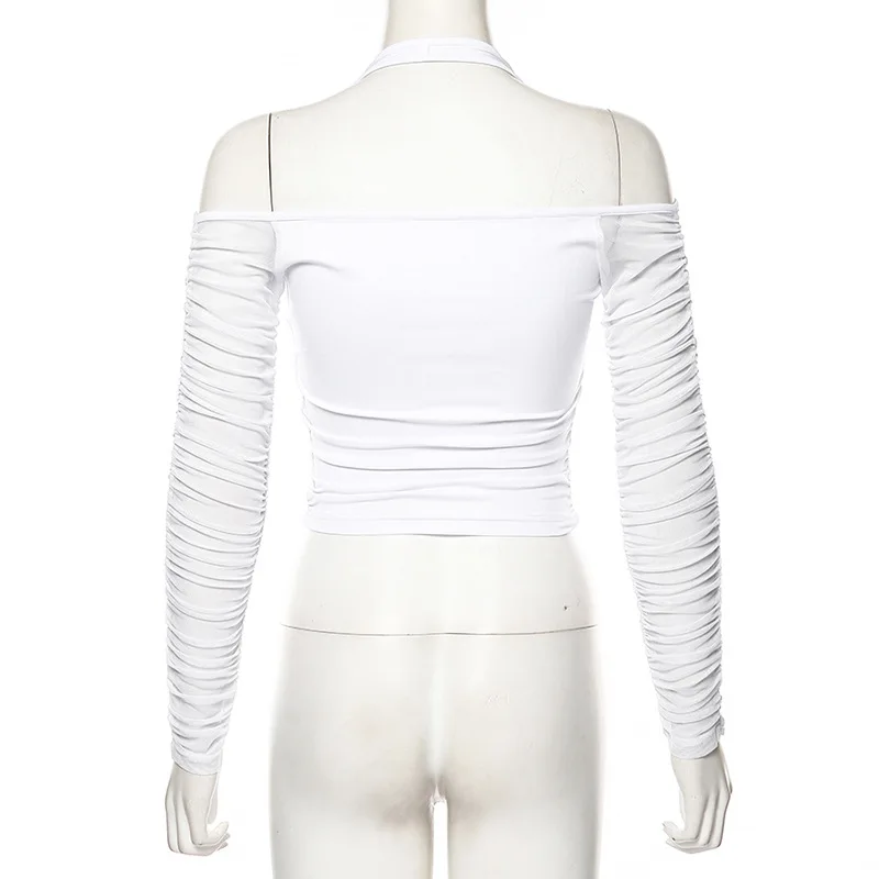Купить Elegant Sexy V-neck Mesh Tops Summer Women's See through Off Strapless Sleeve Crop Top 2022 Club Party Tee shirts Mujer за 550рублей