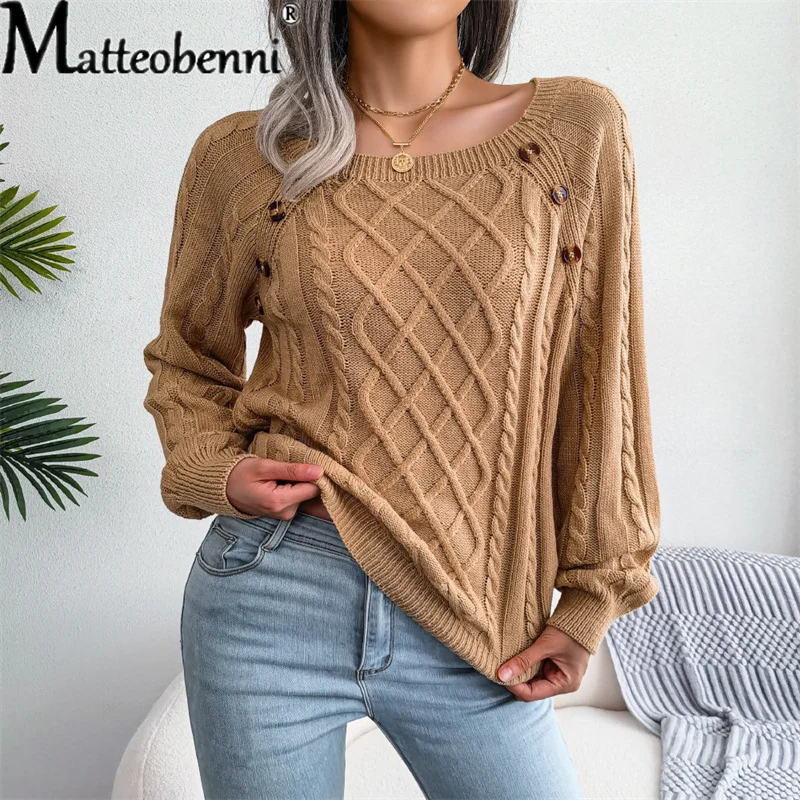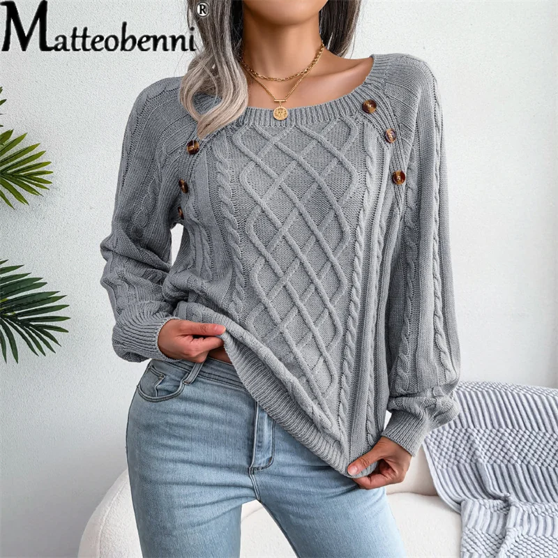 Купить Elegant Splicing Button Knitwear Jumper Women Fashion Loose Square Neck Sweater Winter Warm Pullover Solid Color Tops Streetwear за 650рублей