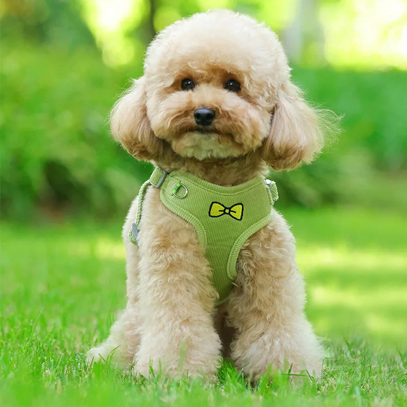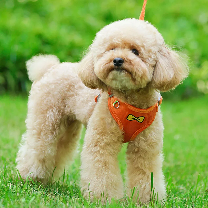 Купить Embroidered Corduroy Bow Dog Harness Reflective Dog Vests Harness With Leash Chiwawa Adjustable Puppy Kitten Chest Strap Harness за 250рублей