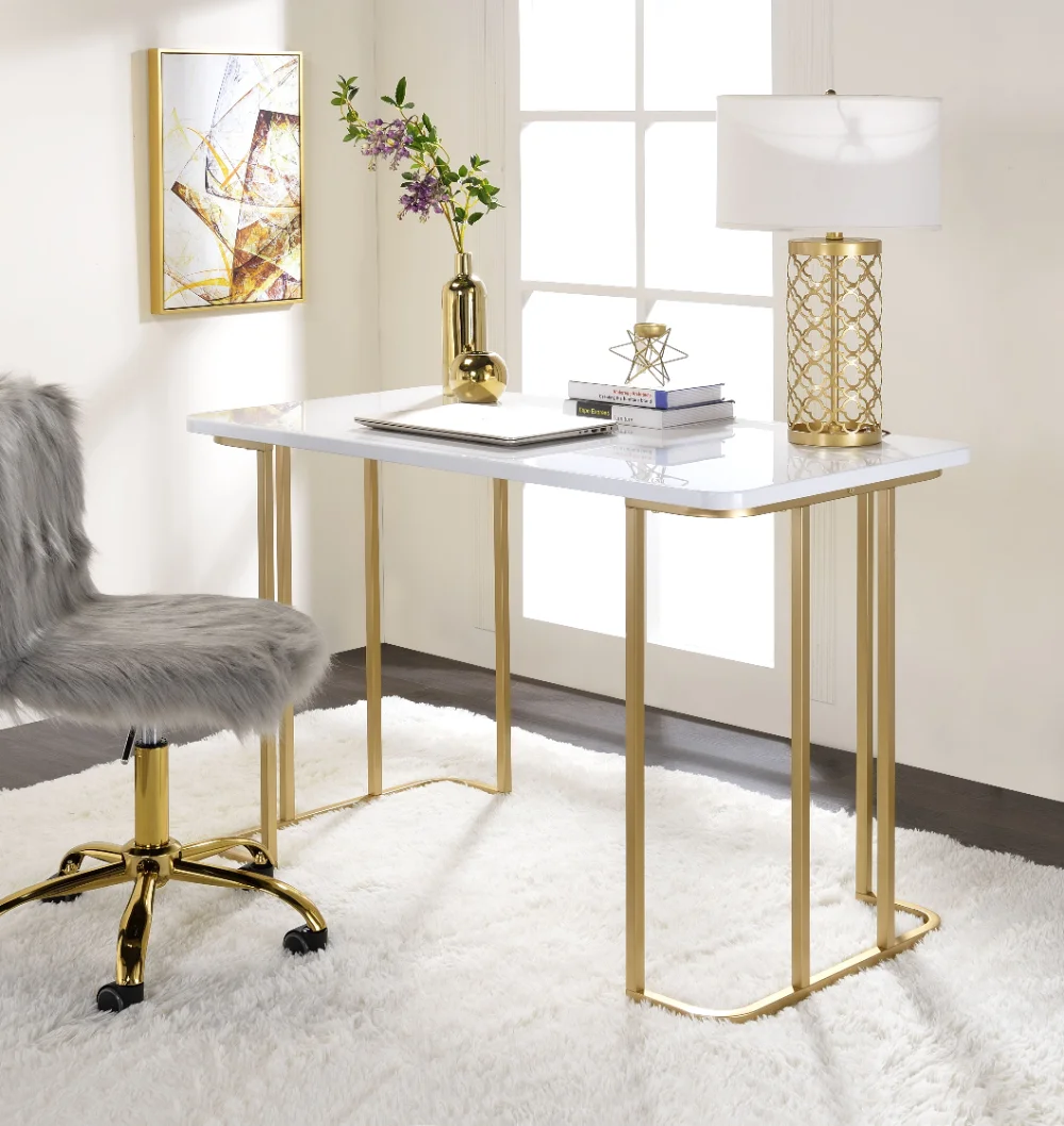 Купить Estie Vanity Desk In White & Gold Finish Dressing Table Bedroom Table Makeup Dressing Table with Mirror за 7500рублей