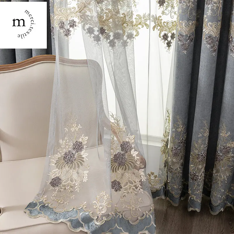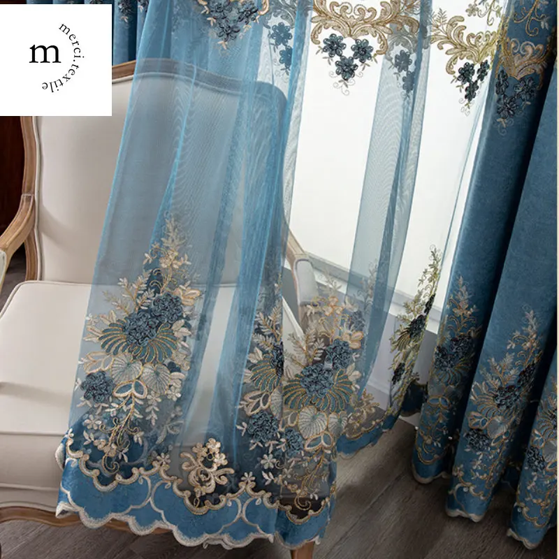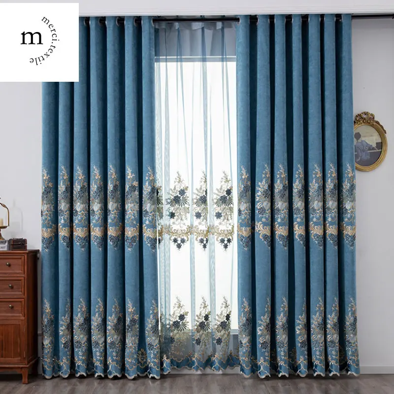 Купить European Style Chenille Luxury Blue Curtain for Living Room Bedroom Dining High Shading Embroidered High-end Window Custom Size за 450рублей