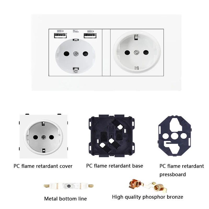Купить European standard white USB wall power socket double frame socket household 16A power socket with switch AC 110~250V 146mm*86mm за 400рублей