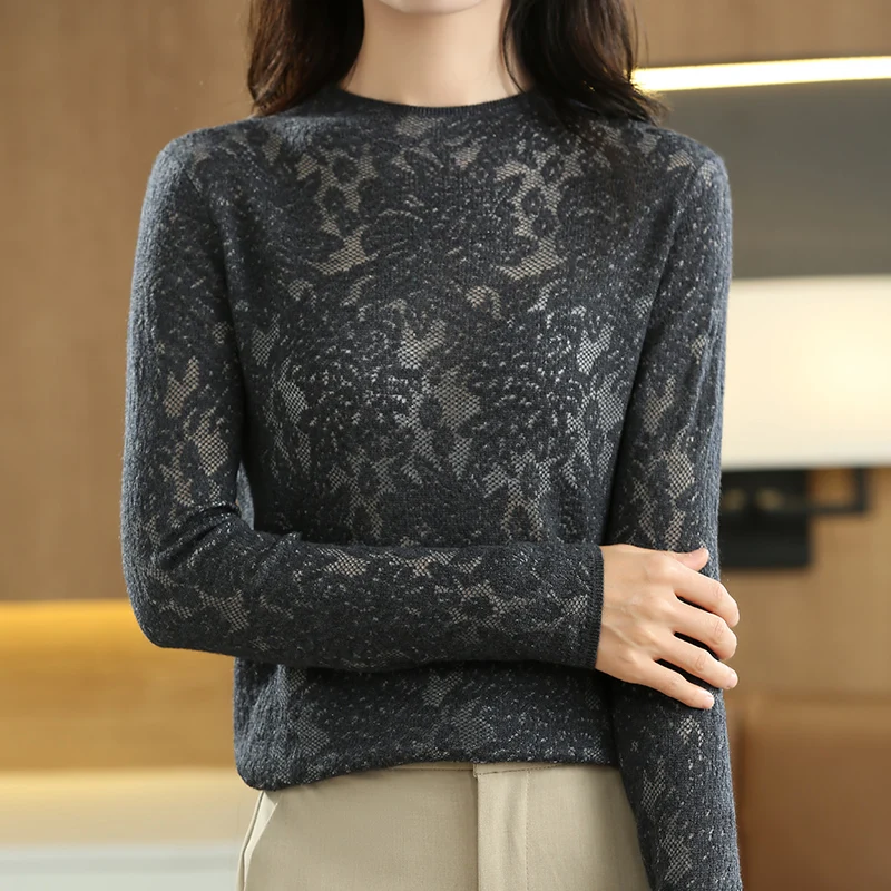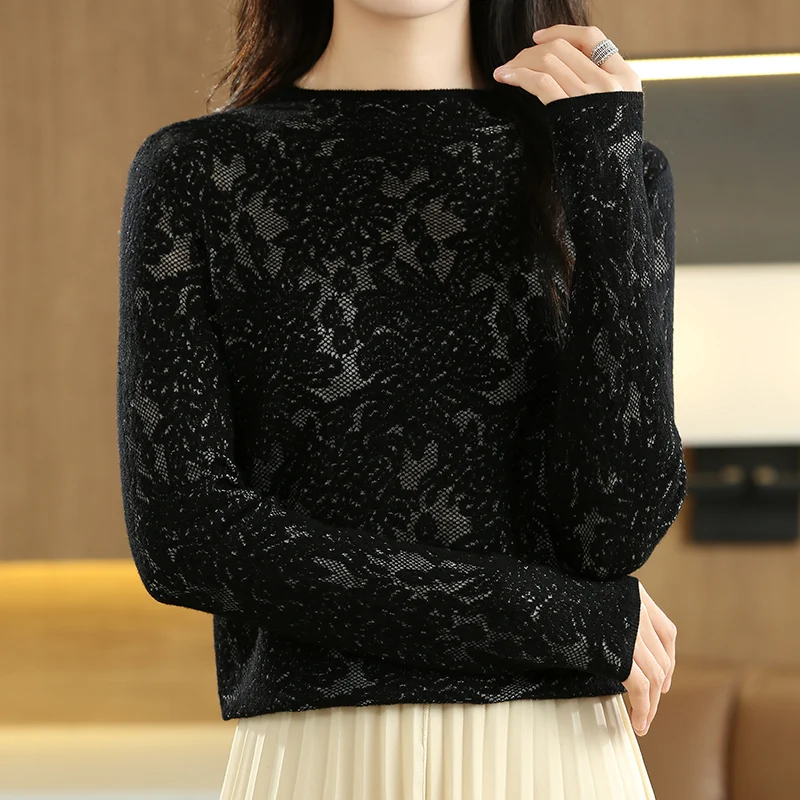 Купить Explosive Three-dimensional Carved Hollow Fashion Half-Height Bottoming Shirt Women's Worsted Wool Sweater Lazy Wind Sweater за 1400рублей