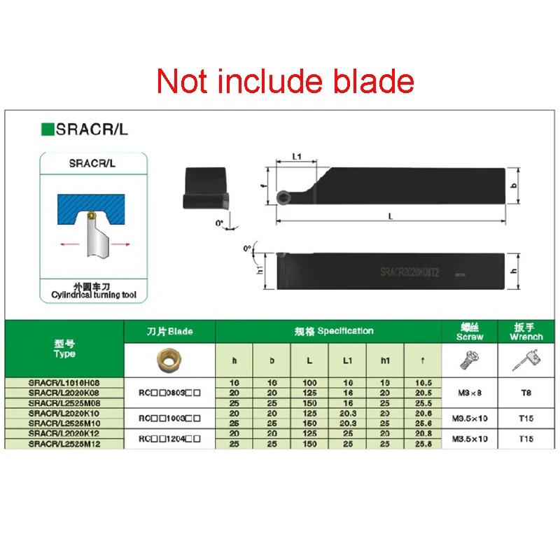 Купить External Tool Holder SRACR1212H08 SRACR1616H08 SRACR2020K08 SRACR2525M08 SRACL Lathe Tools Holder Insert Carbide Blade Tool Rod за 450рублей