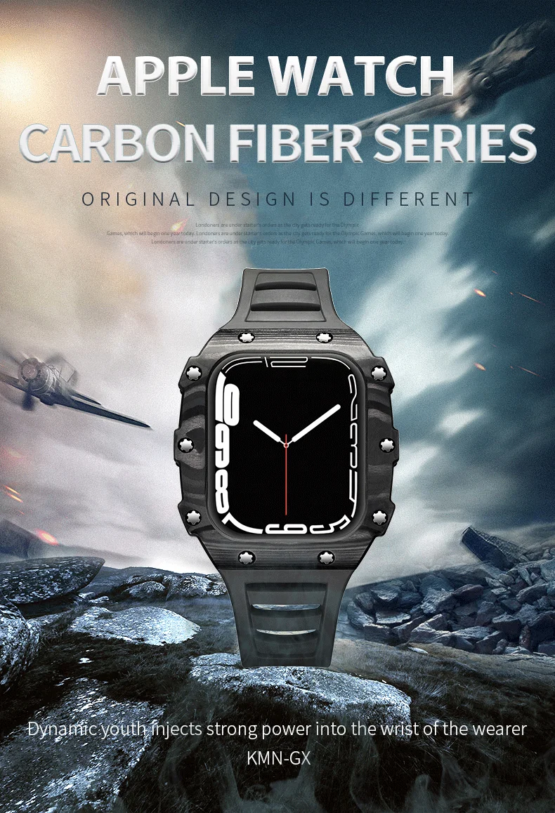 Купить Factory Wholesale Carbon Fiber Watch Cover Silicone Rubber Strap Cover for Apple Smart Watch Series 7 case за 2950рублей