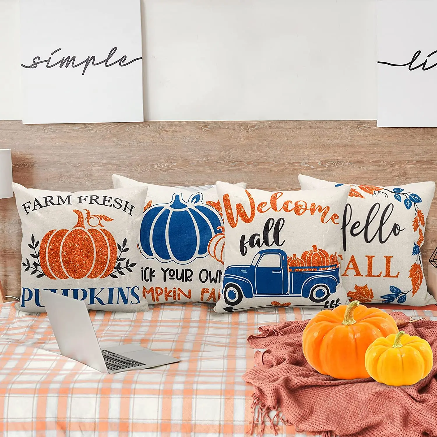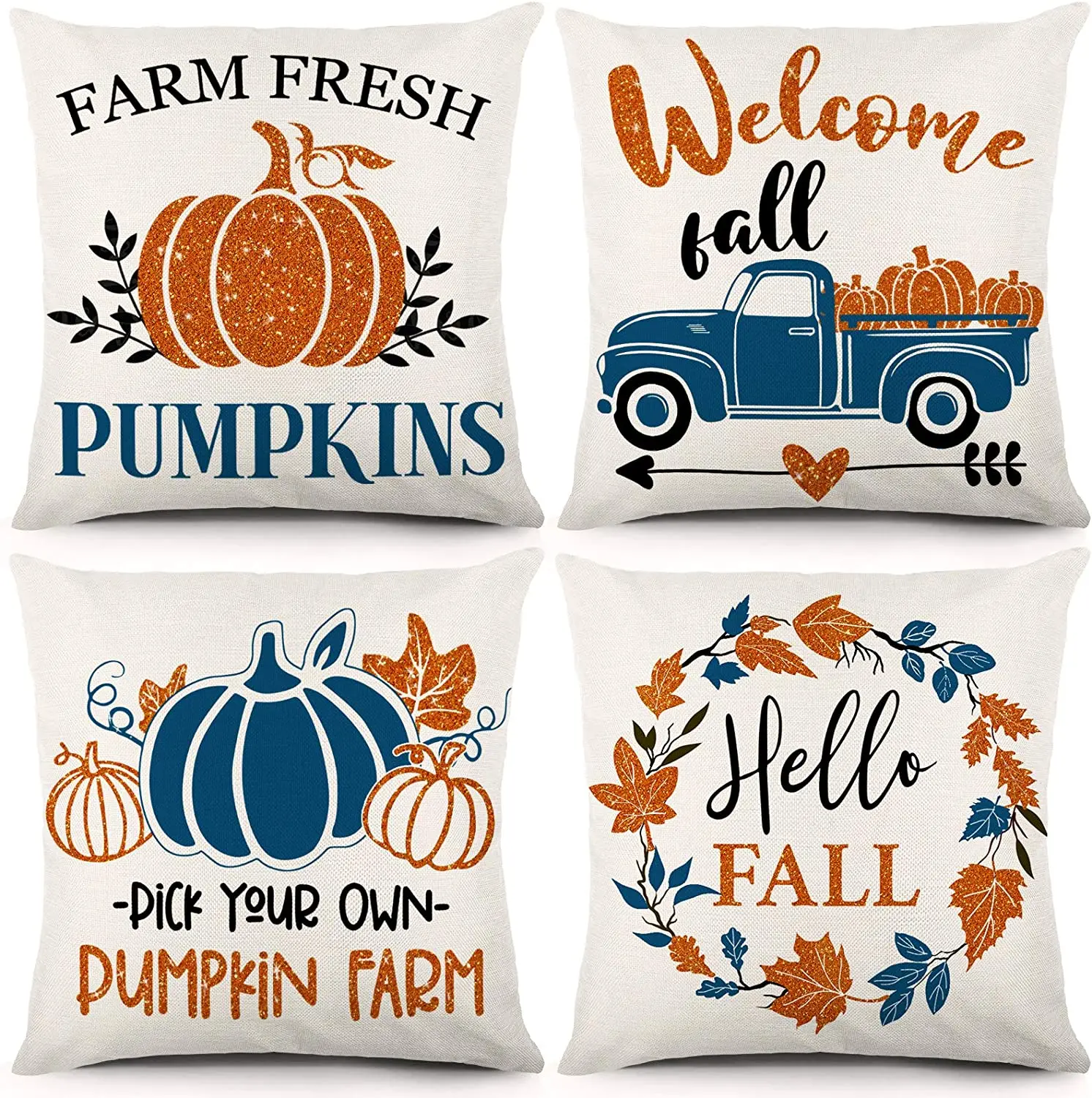Купить Fall Pillow Covers 18x18 Inches Set of 4 Autumn Decorations Pillowcase Glitter Sparkle Pumpkin Linen Cushion Case for Home Decor за 500рублей
