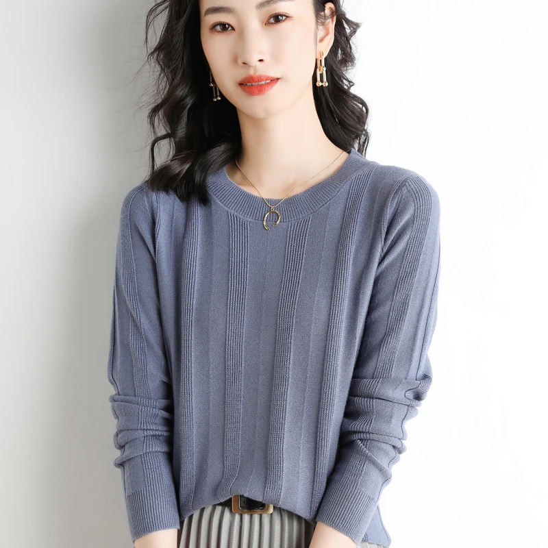 Купить Fashion Apparel 2022 Fall/Winter New Loose Simple Versatile Wool Worsted Women's Knit Sweater Crew Neck Sweater Pullover Regular за 900рублей