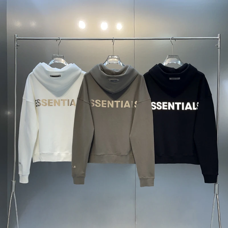 Купить Fashion Classic Men's ESSENTIALS Hoodie Sweatshirt Reflective Print Letters High Street Hip Hop Unisex Loose Pullover за 1350рублей