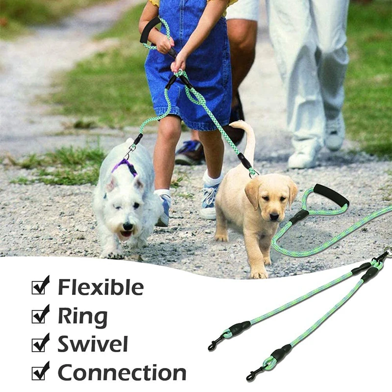 Купить Fashion Durable Dual Dog Leash Comfortable Padded Handle Strong 360 Degree No Tangle Double Pet Walking Training Lead за 450рублей