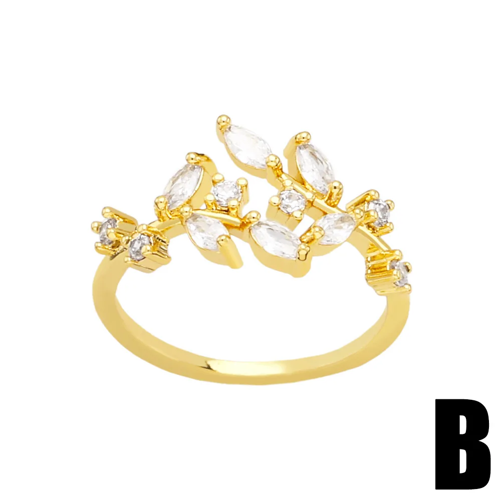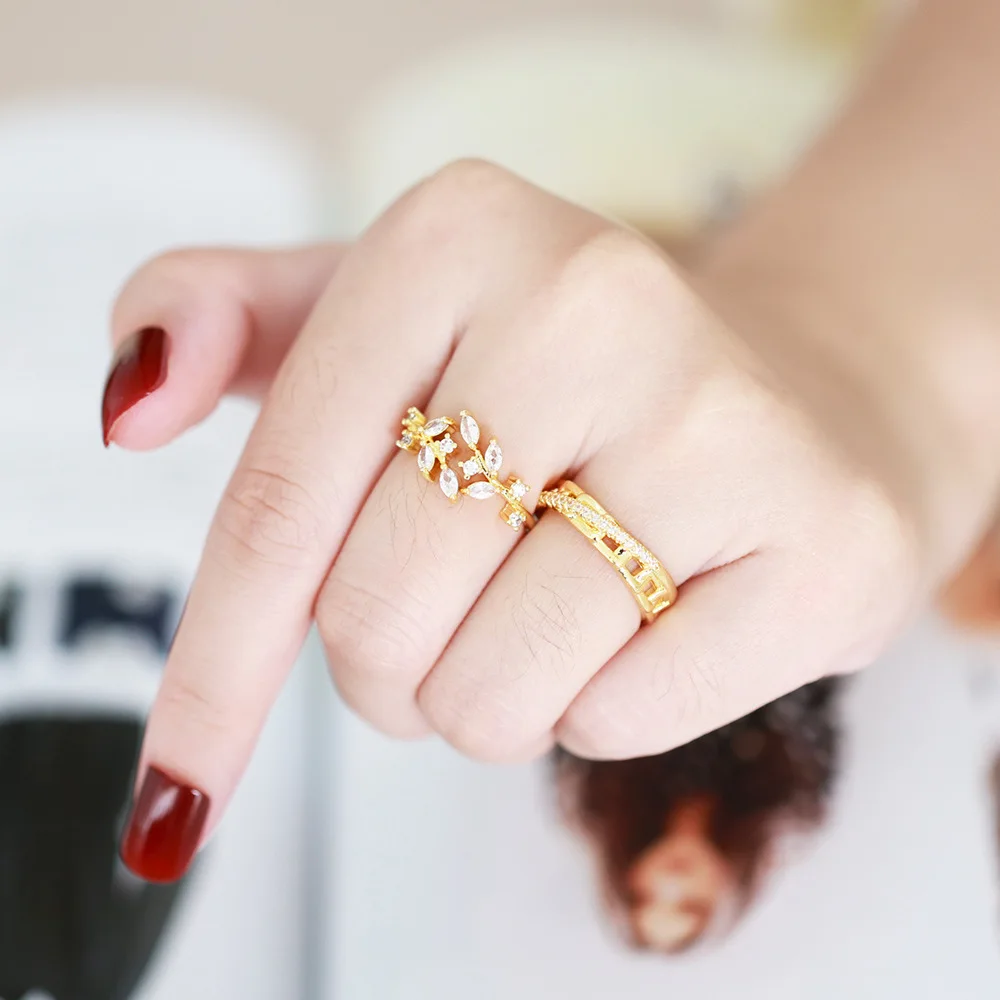 Купить Fashion Personality Leaf Gold Ring Niche Design Light Luxury Cold Wind Inset Zircon Ladies Ring Open Hand Jewelry за 150рублей