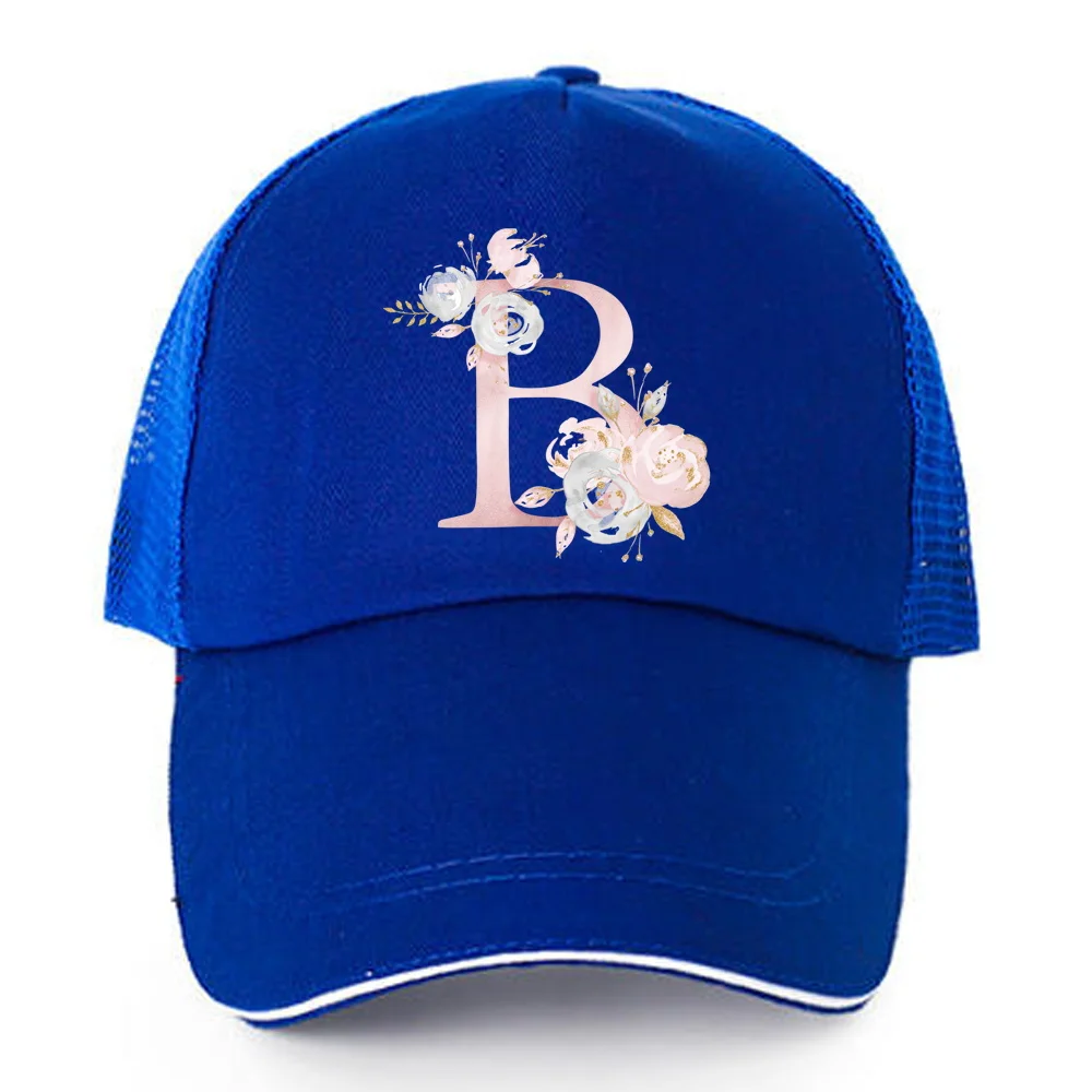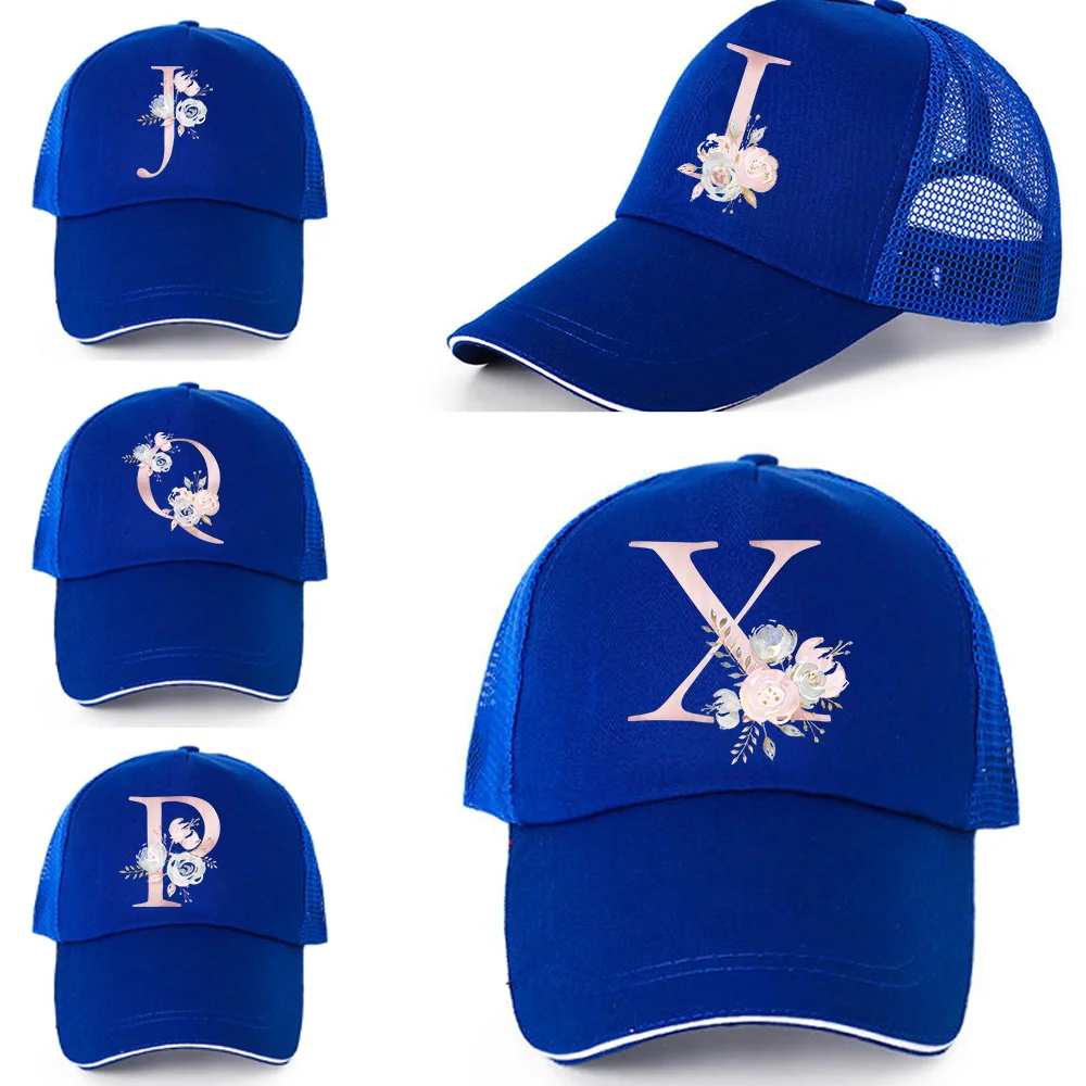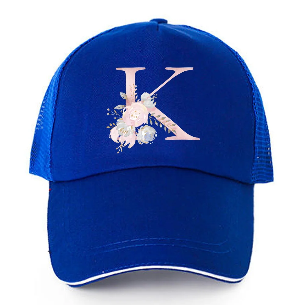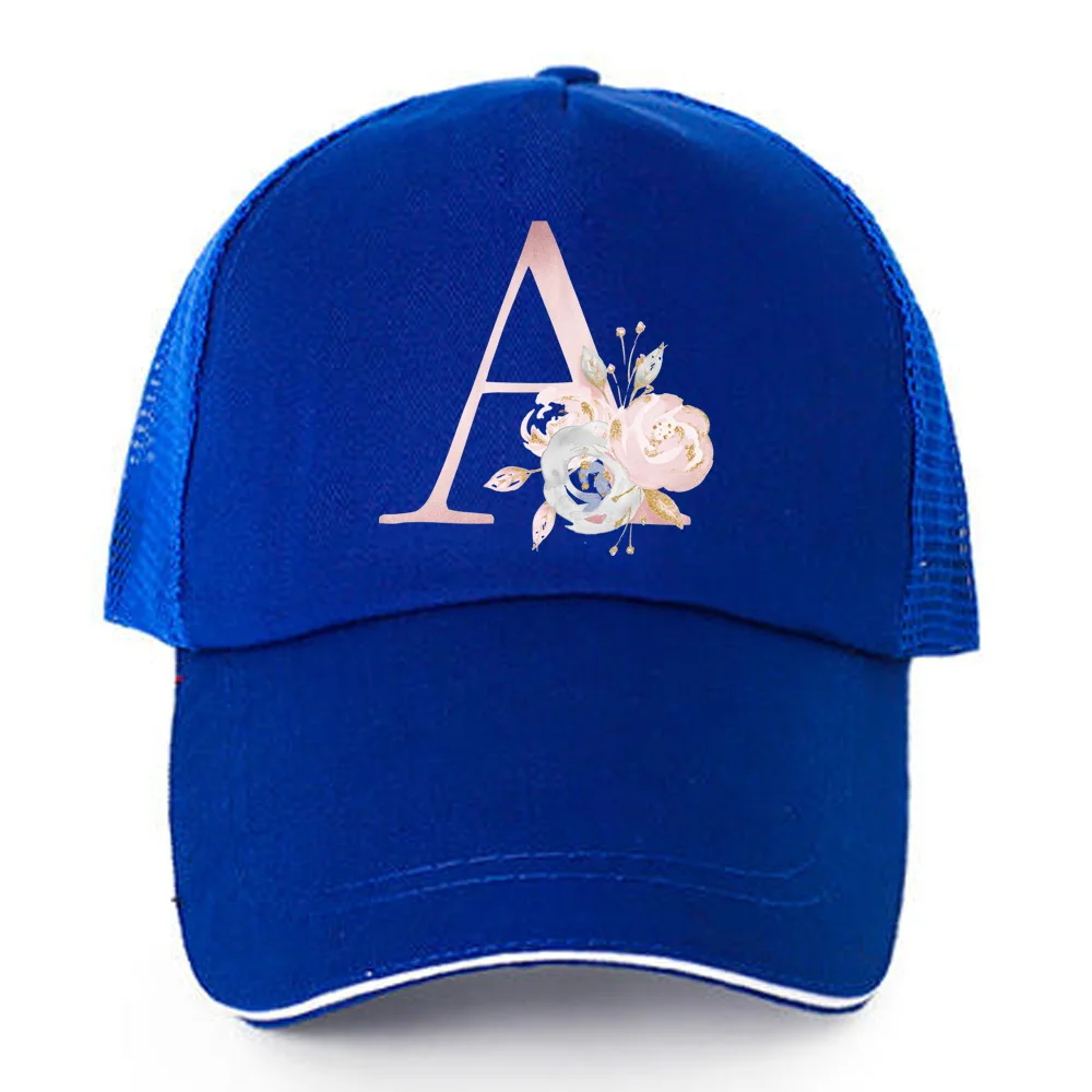 Купить Fashion Pink Flower 26 Letter Pattern Baseball Caps Men Women Quick Dry Snapback Hats Summer Breathable Mesh Sun Hats Unisex Cap за 150рублей
