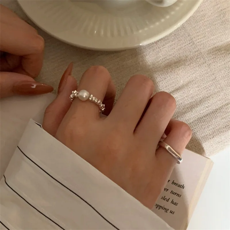 Купить Fashion Simple Imitation Pearl Rings Simple Geometry Elastic Adjustable Silver Color Finger Ring for Women Party Jewelry за 50рублей