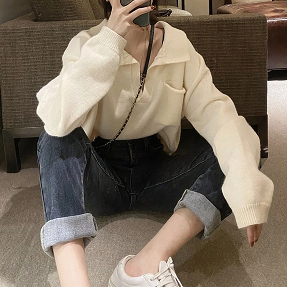 New Sweater Women Warm and Fashionable In Autumn and Winter Pullover Long Sleeve Round Neck Stretch Sweater Detachable Collar po 10 10