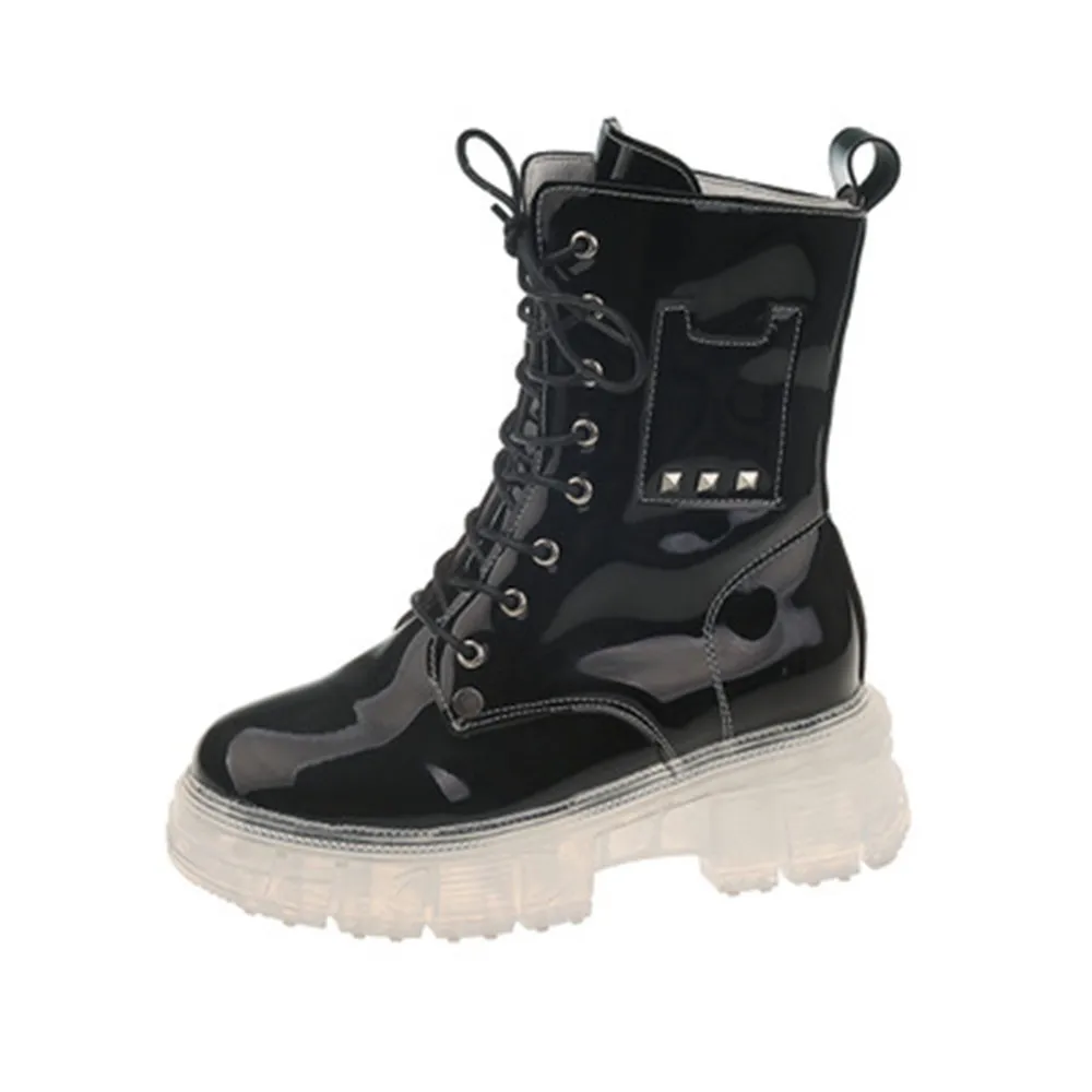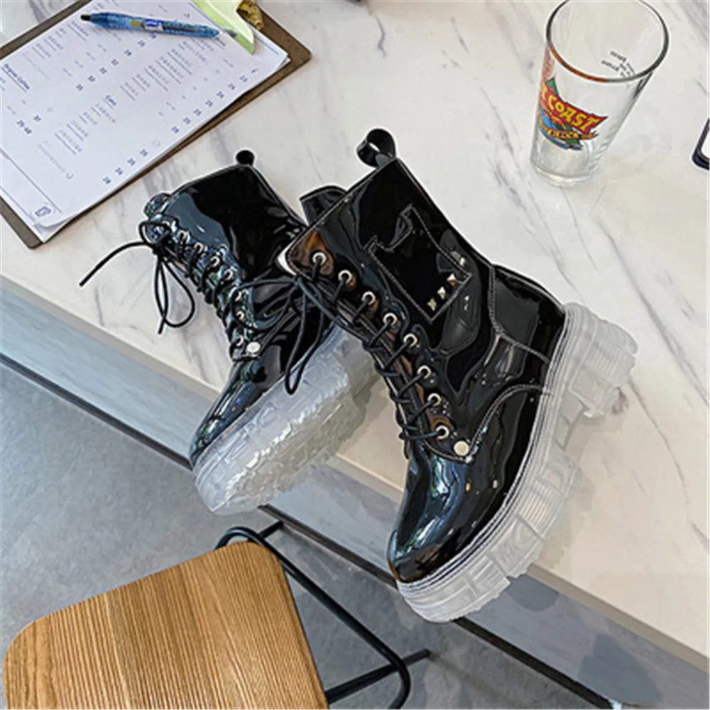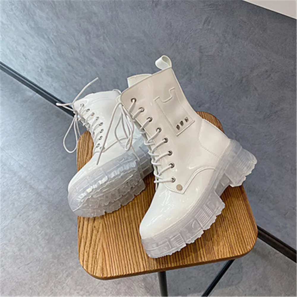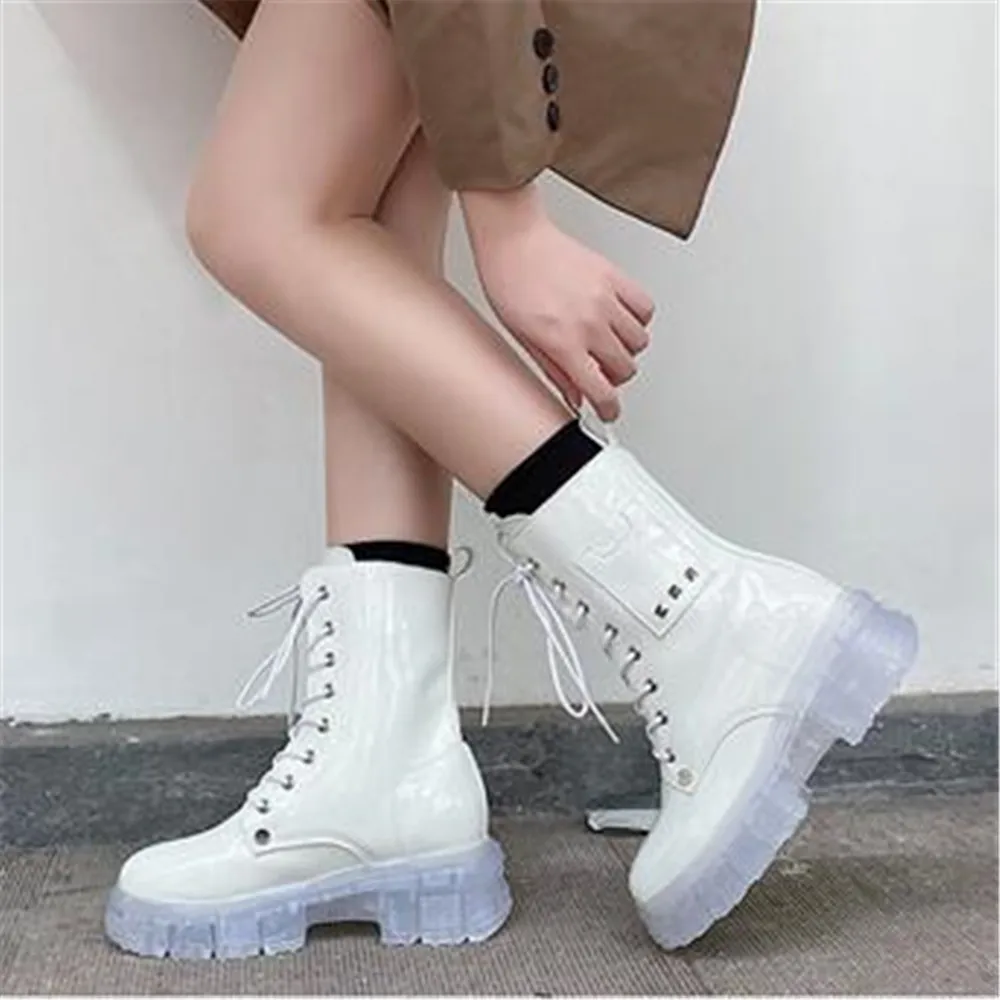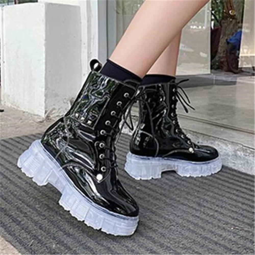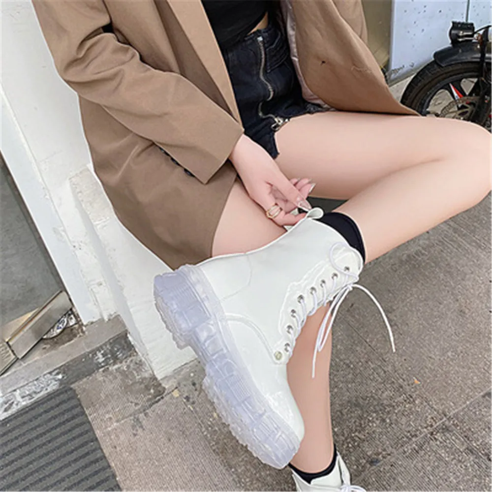 Купить Fashion Women Boots Non-Slip Transparent Thick Bottom Square Heel Round Toe Booties Lady Convenient Lace-up Shoes Botas De Mujer за 1100рублей