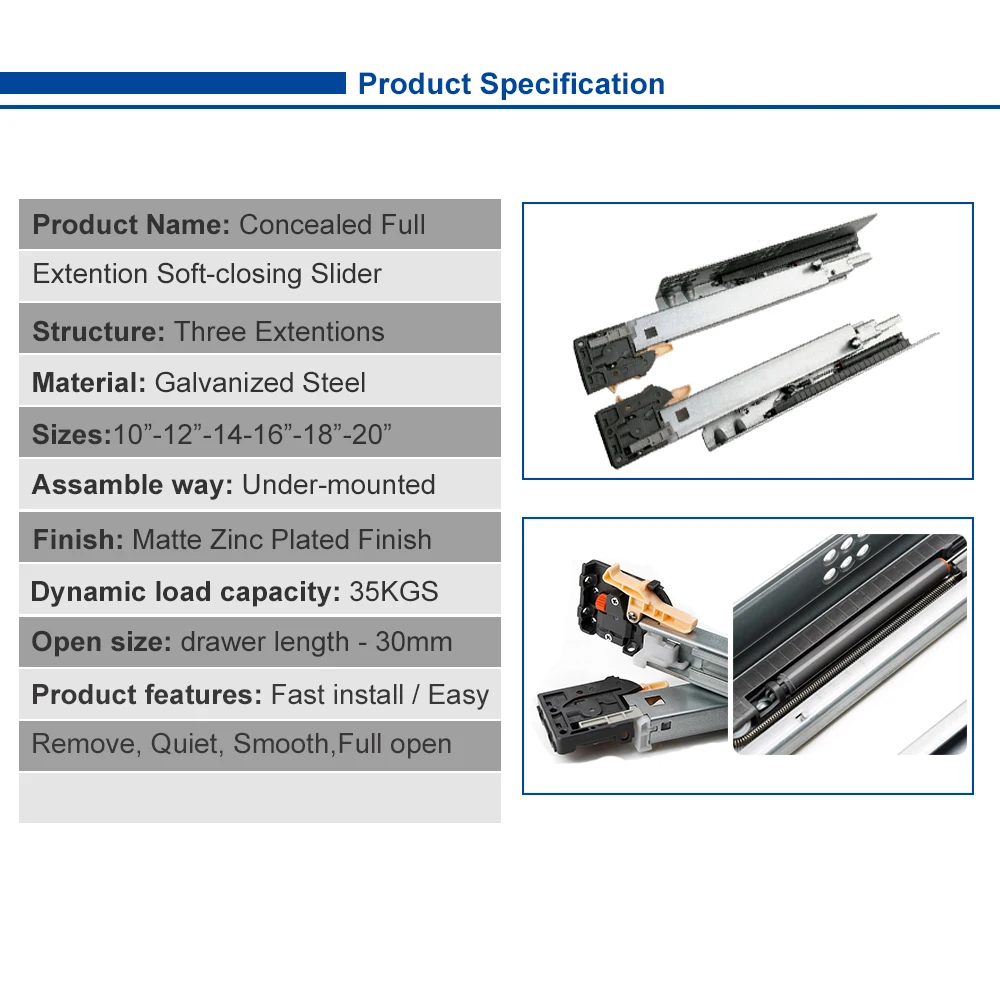 Купить Fast Install Drawer Slide Smart Lock Concealed 3 Sections Full Open Soft-closing Sliders 35KGS Load Under Mounted Furniture Rail за 1900рублей