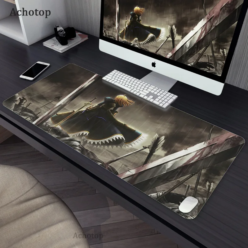Купить Fate Stay Night Anime Mouse Pad Saber Gaming Large Mousepad PC Gamer Computer Mousepads XL Lock Edge Mat Mouse Keyboard Desk Mat за 250рублей
