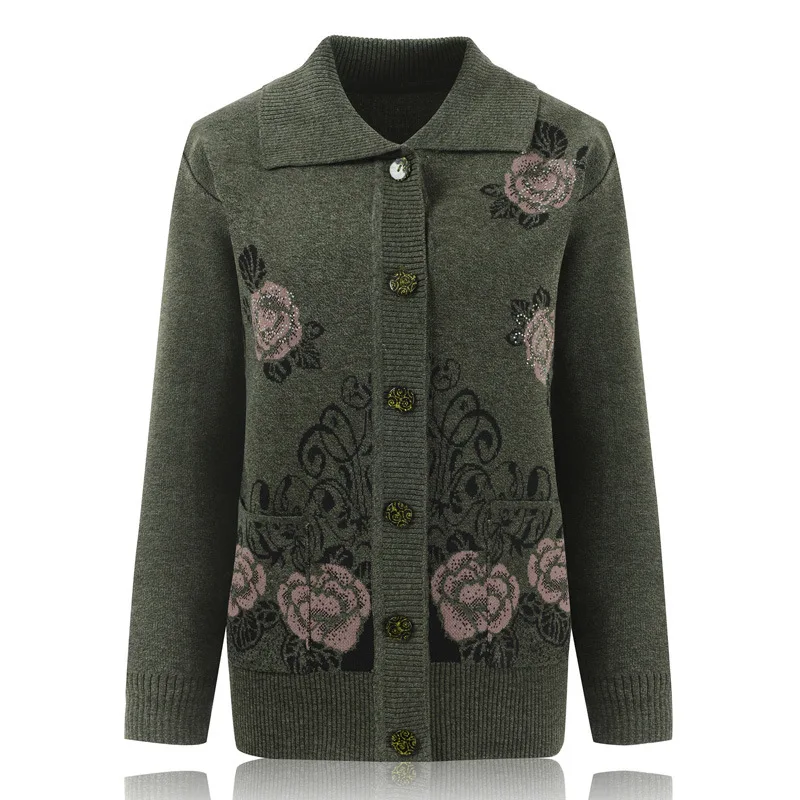 Купить Fdfklak Retro Printed Middle Aged Mother Sweater Spring Autumn Buttons Lapel Cardigan Top Long Sleeve Knitted Sweaters Women за 700рублей