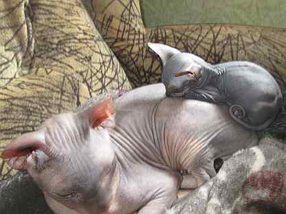 Голова . Донской сфинкс от канадского отличается формой черепа . У донских кошек голова клинообразная с четкими скулами и скошенным лбом, а у канадцев имеется сужение в нижней части .
