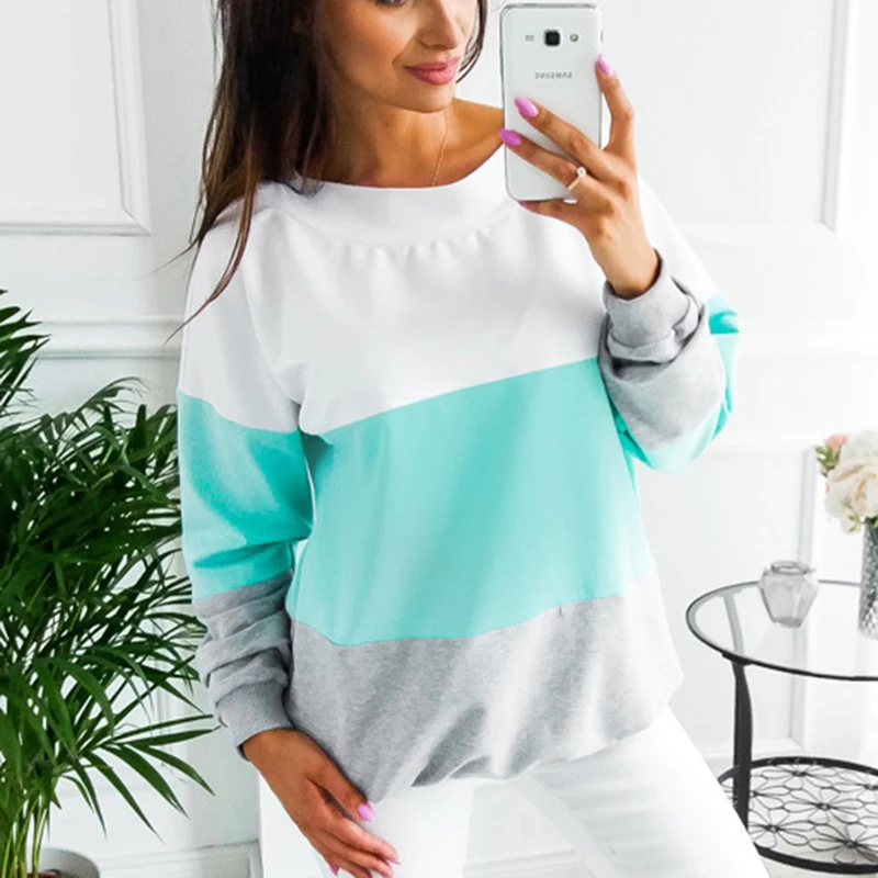 Купить Female Pullovers Tops Sport Colors Patchwork Women O-Neck Sweatshirts Back Lace-up Long Sleeve Tennis T-Shirt New за 500рублей