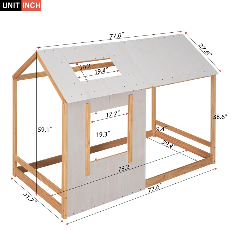 Купить [Flash Deal]Double Room Platform House Design with Roof and Windows Decorative Natural Color+antique White[US Stock] за 13500рублей