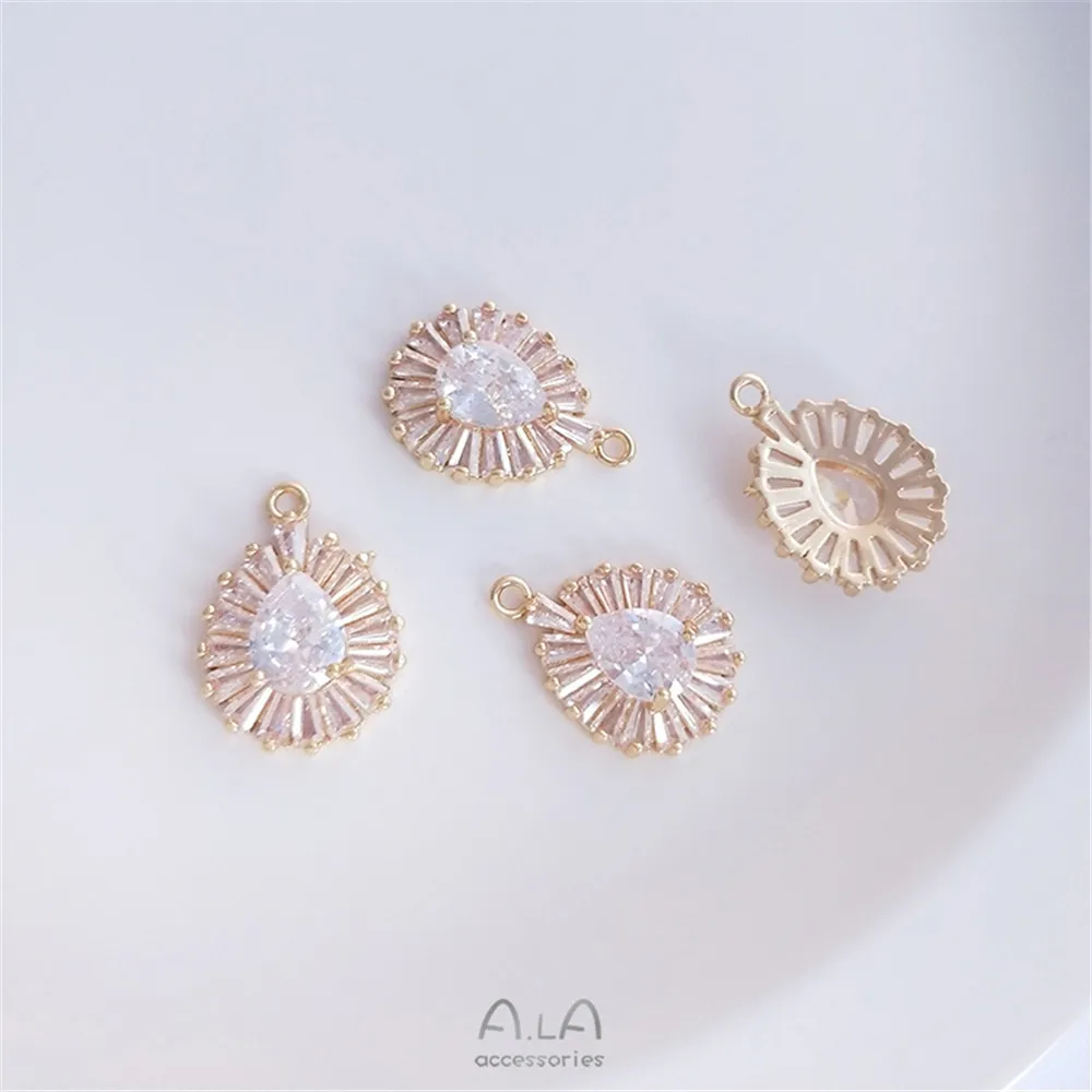 Купить Flash Zirconium Pendant 14K gold color micro-set zircon round rectangular water drop DIY clavicle chain pendant necklace за 150рублей