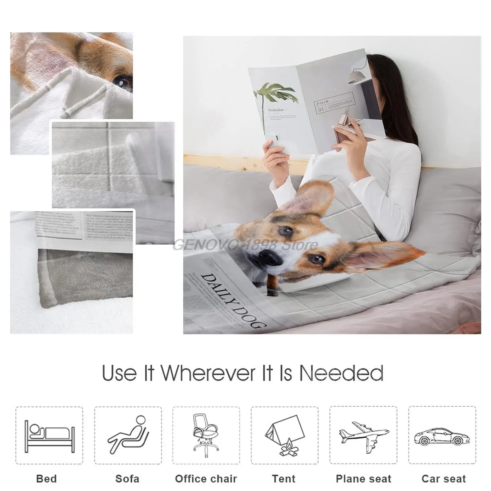 Купить Fleece Throw Blanket Full Size, Corgi Dog Sitting on The Toilet Read Newspaper, Lightweight Flannel Blankets for Couch Bed Livin за 700рублей