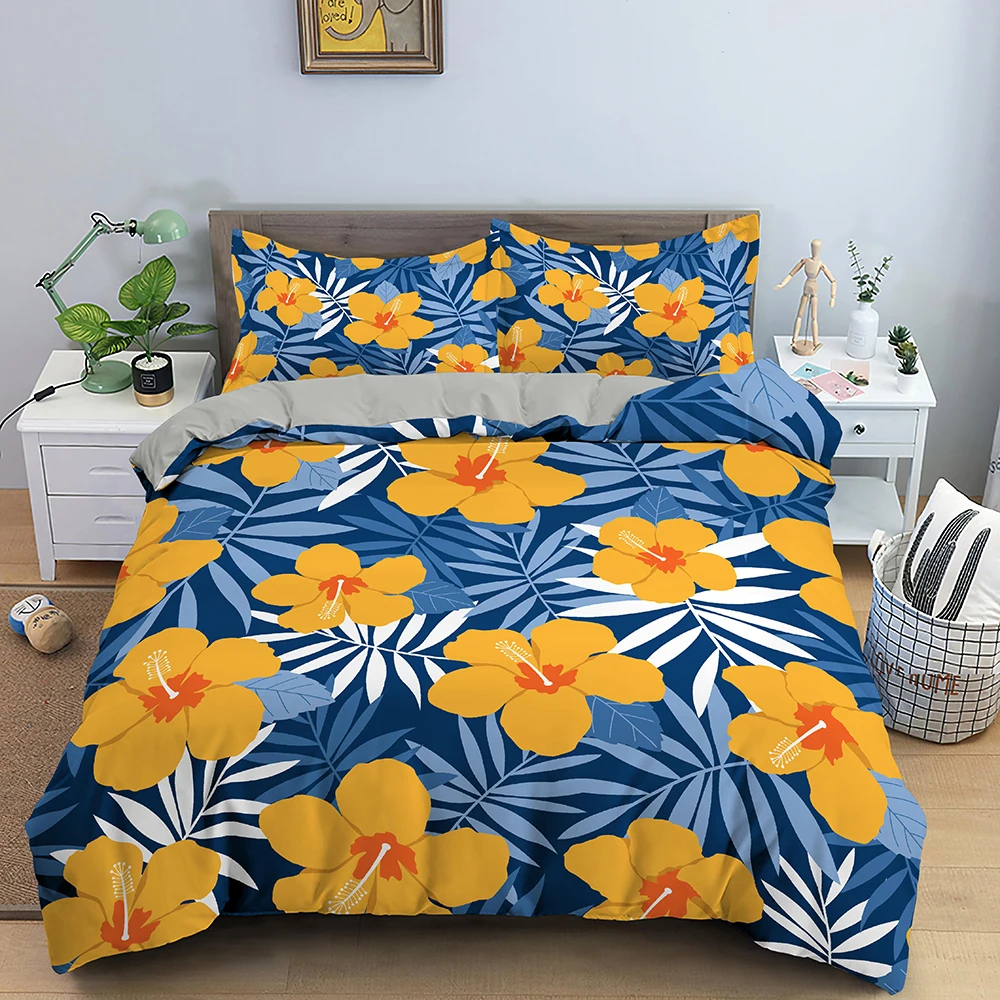 Купить Floral Pattern Bedding Set Polyester Duvet Cover Set Quality Quilt Cover With Pillowcase For Single Double Bed Black Duvet Cover за 1200рублей