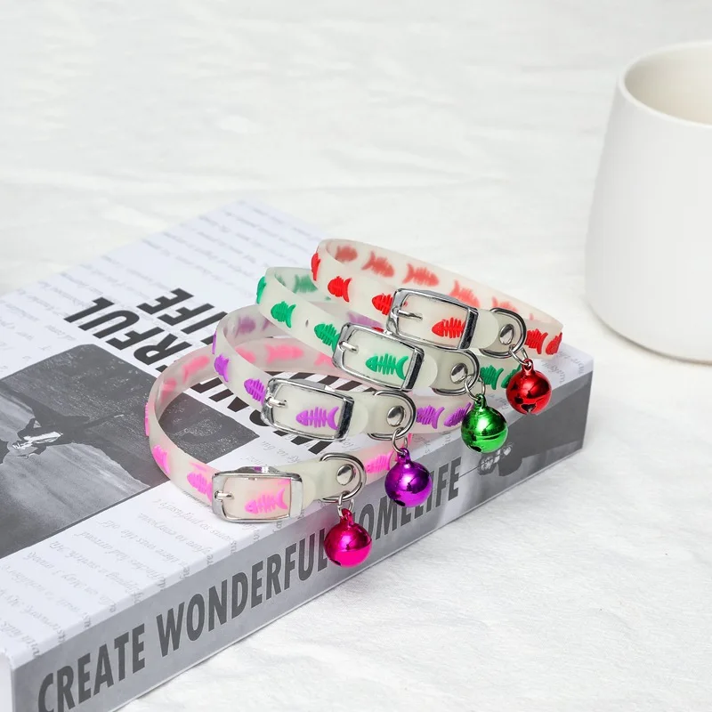 Купить Fluorescent Silicone Pet Glowing Collars with Bells Glow at Night Dogs Cats Necklace Light Luminous Neck Ring Accessories за 250рублей