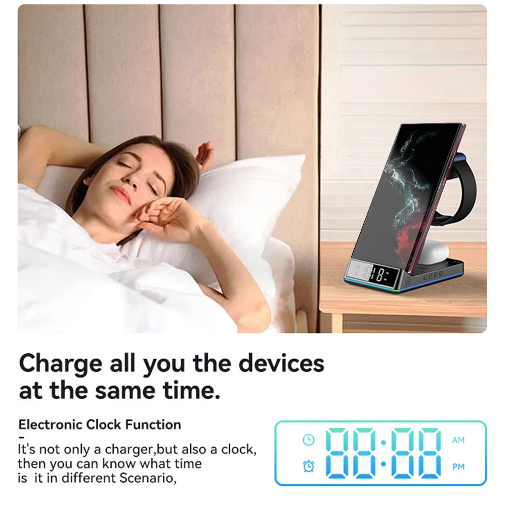 Купить Foldable Wireless Charger Bedside Alarm Clock Fast Charging for Samsung Galaxy S21/S20/Note20 Ultra/Fold2/S10 For Galaxy watch за 1550рублей