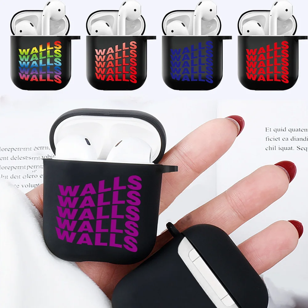 Купить For Apple Earphone Case AirPods 1st / 2nd Gen Anti-drop Wireless Bluetooth Headphone Walls Print Black Silicone Protective Cover за 100рублей