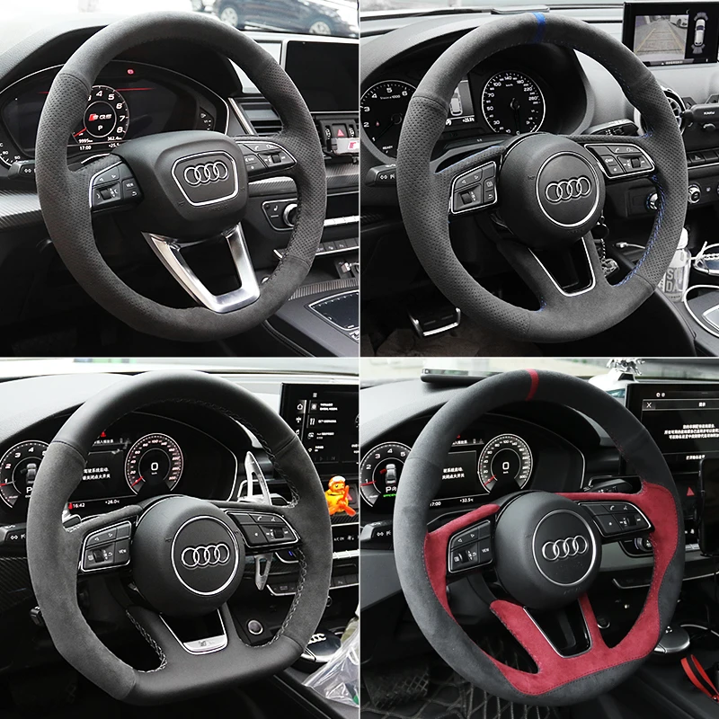 Купить For Audi A4L / A6L / Q3 / A3 / A6 / A4 / Q5 / Q2l / A5 Alcantara Suede Hand Sewn Steering Wheel Cover Handle Cover Accessories за 2050рублей