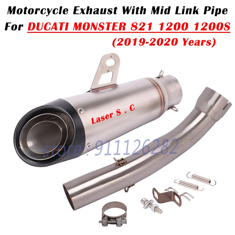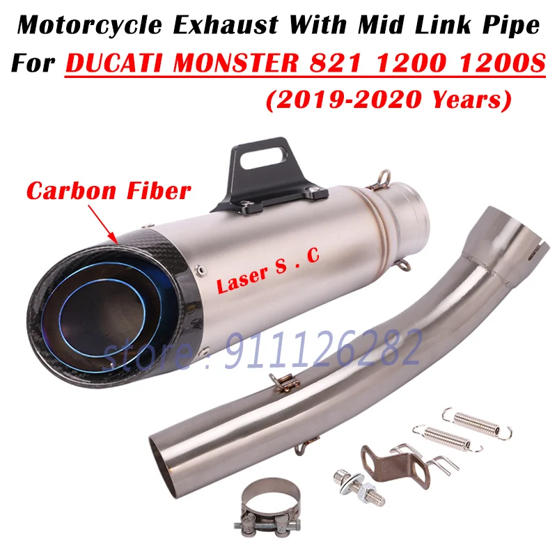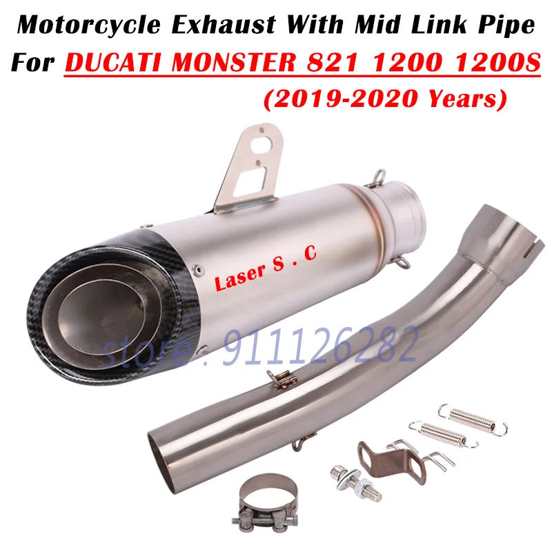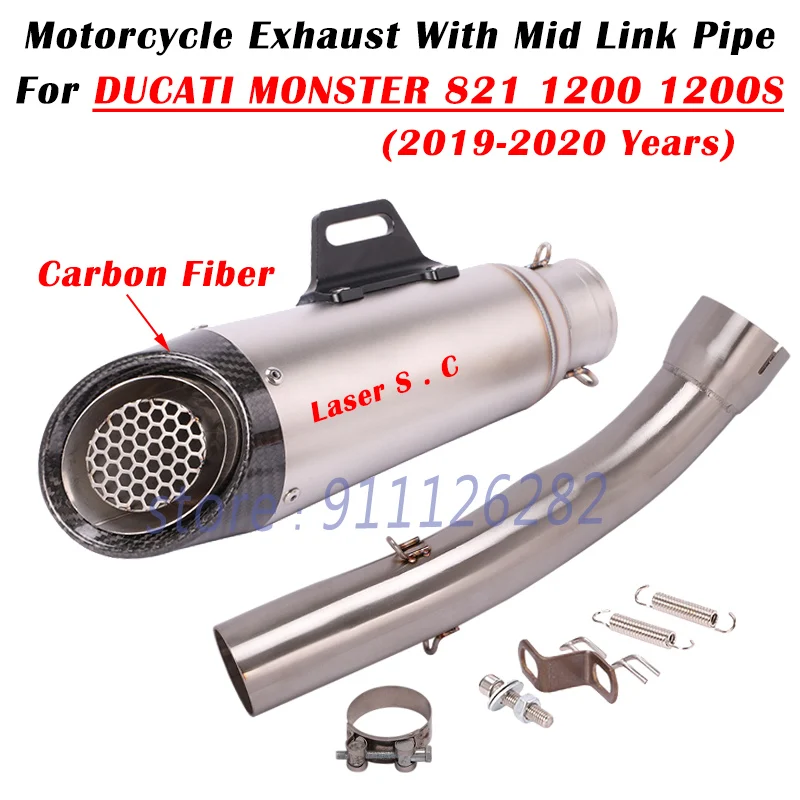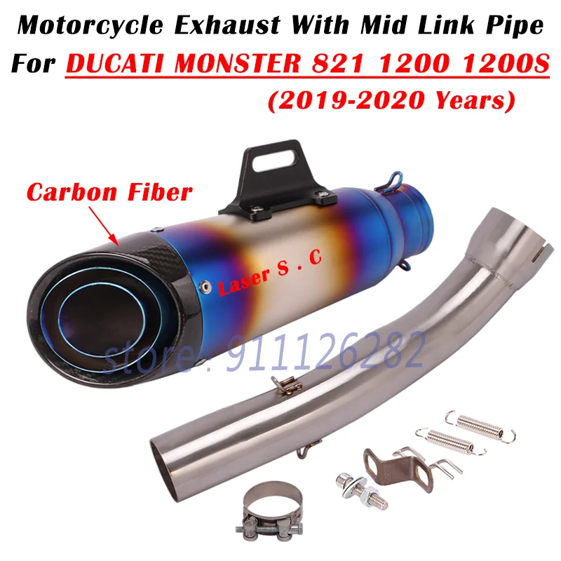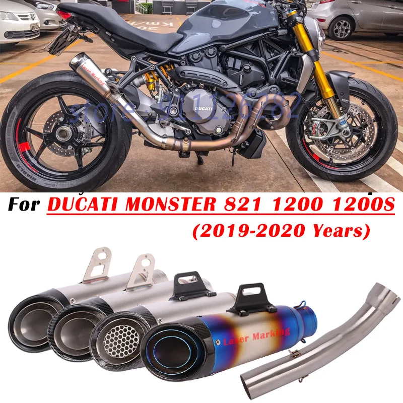 Купить For Ducati Monster 1200 1200S 821 2019-2020 Motorcycle Exhaust Escape System Modify Carbon Fiber Muffler With Middle Link Pipe за 2800рублей