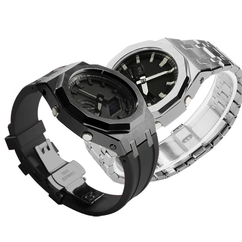 Купить For GA-2100 Modification Kit Steel Strap Case Bezel for Casioak GA2100 Mod Kit Metal Case Mod Kit Replacement Strap Accessories за 1650рублей