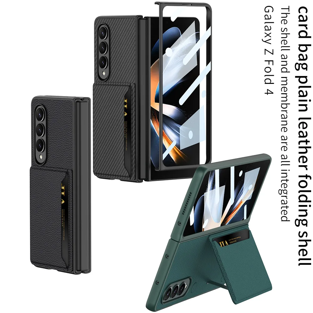 Купить For Samsung Galaxy Z Fold 4 Case With Card Slot Bracket Front is Tempered Glass Case PU Leather Material Case за 750рублей