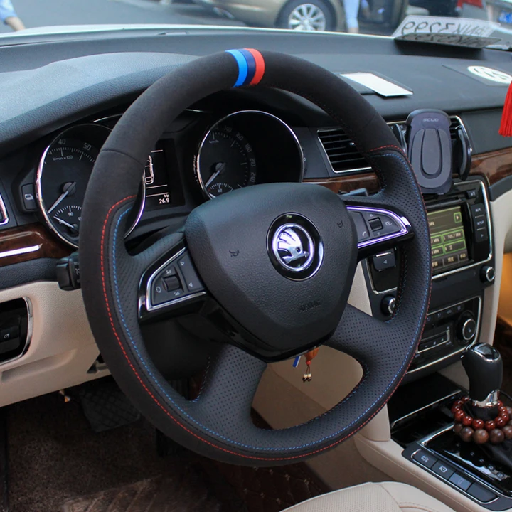 Купить For Skoda SUPERB Octavia Superb Yeti 18 Kodiaq DIY Leather Hand-sewn Steering Wheel Cover Non-slip and Breathable Auto Parts за 1300рублей