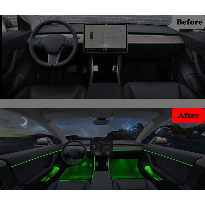 Купить For Tesla MODEL 3 2019-2020 Ambient Light Set Screen Control Decorative LED 64 colors Atmosphere Lamp illuminated Strip за 16650рублей