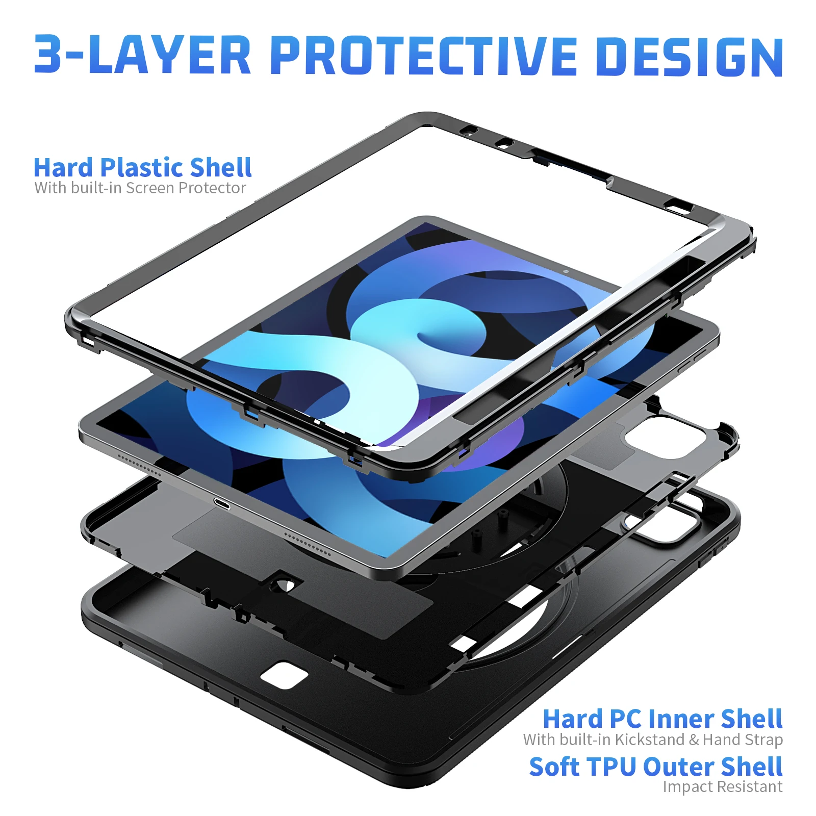 Купить For iPad Air4 5 Pro 11 Mini 6 5 4 Case Generation Shockproof Tablet Cover Handle Stand 12.9 10.2 9.7 за 1300рублей
