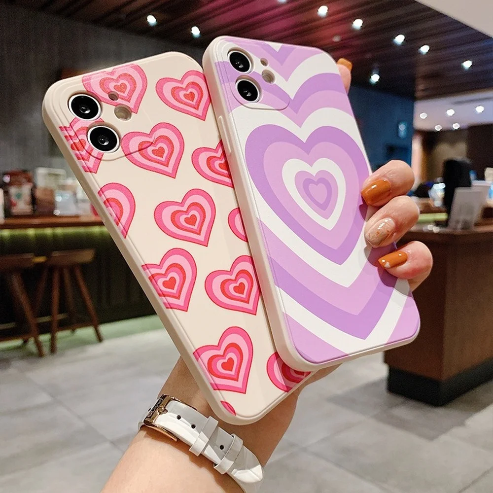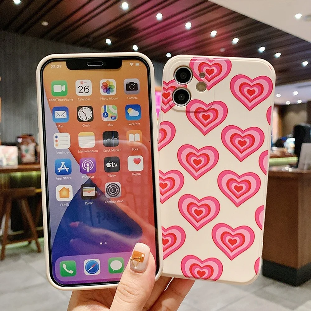 Купить For iPhone 14 13 12 11 Pro Max Mini XR XS X 6 6s 7 8 Plus SE Cute Pink Heart Silicone TPU Case Shockproof Anti-Fingerprint Case за 600рублей